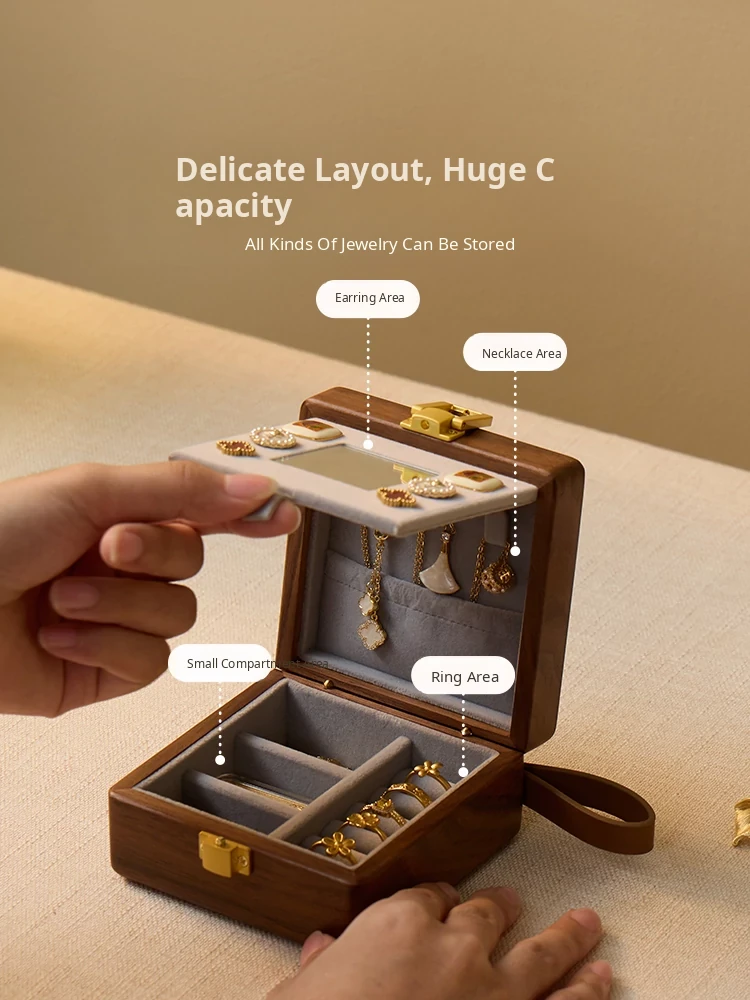 Vanhan Portable Mini Solid Wood Jewelry Box - Cute Gift for Friends, Perfect for Birthdays and New Year, Ideal Storage for Jewelry and Accessories