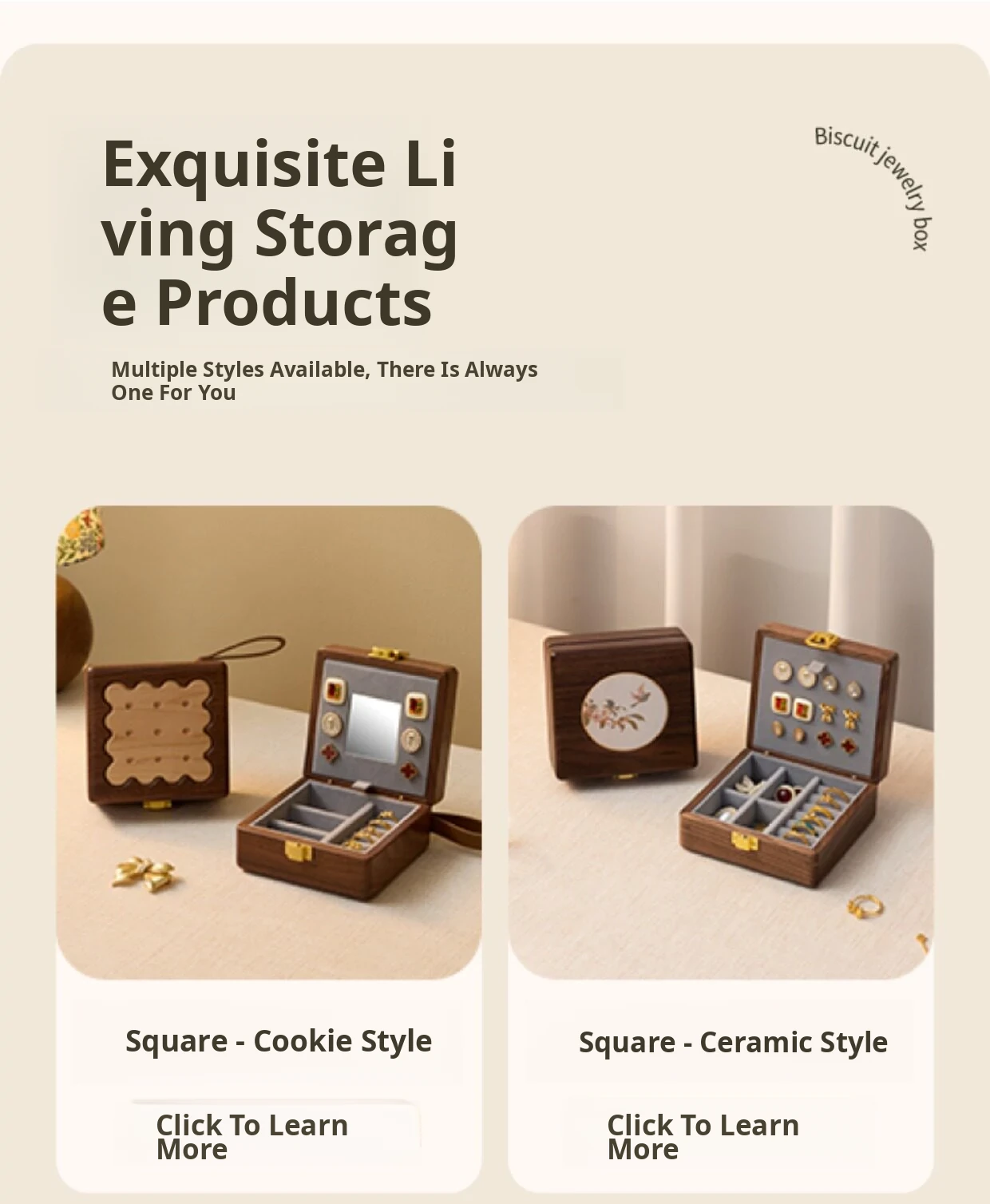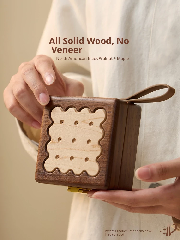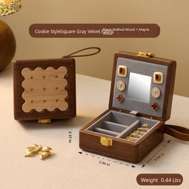 Biscuit Jewelry Box North American Black Walnut + Maple Wood Style