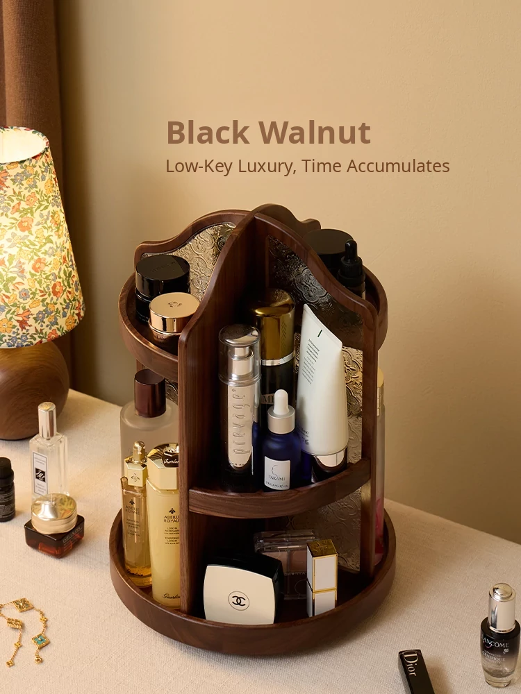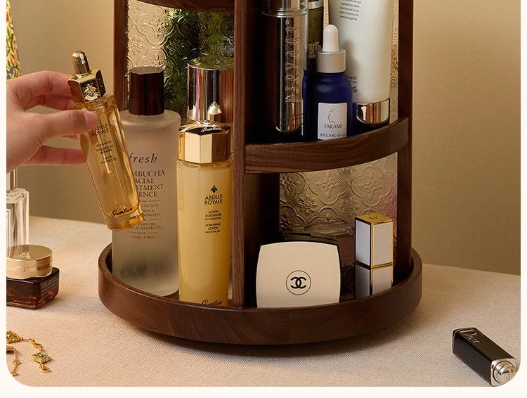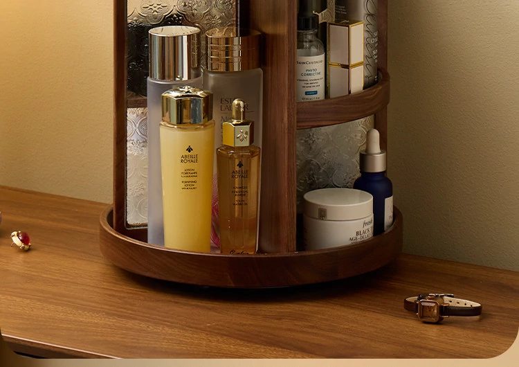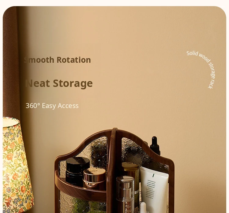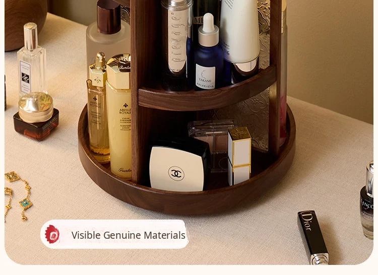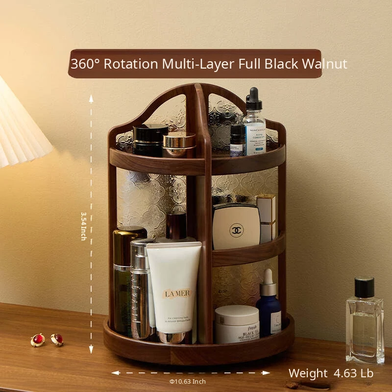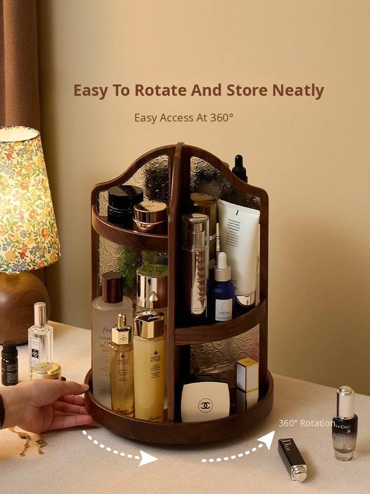 Vanhan Premium Solid Wood Cosmetic Organizer - 2025 New Large Capacity Rotating Perfume Rack for Elegant Desktop Storage