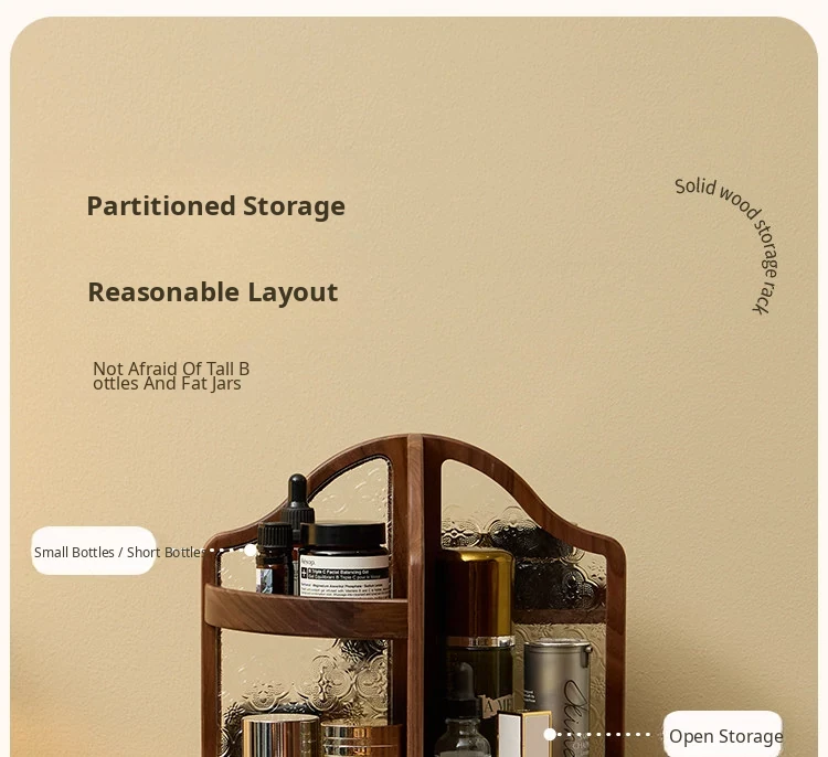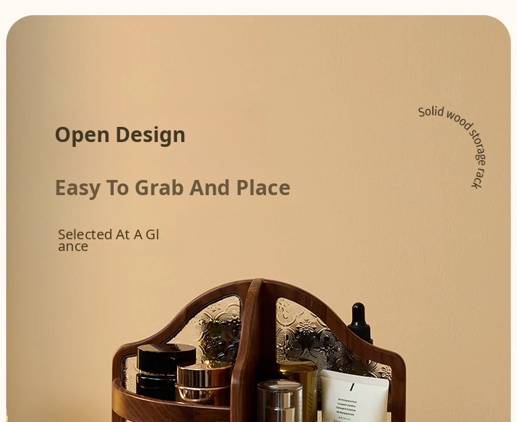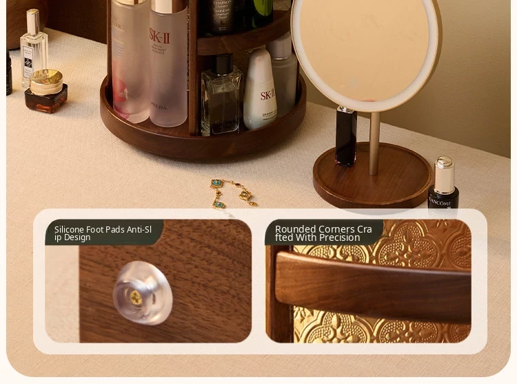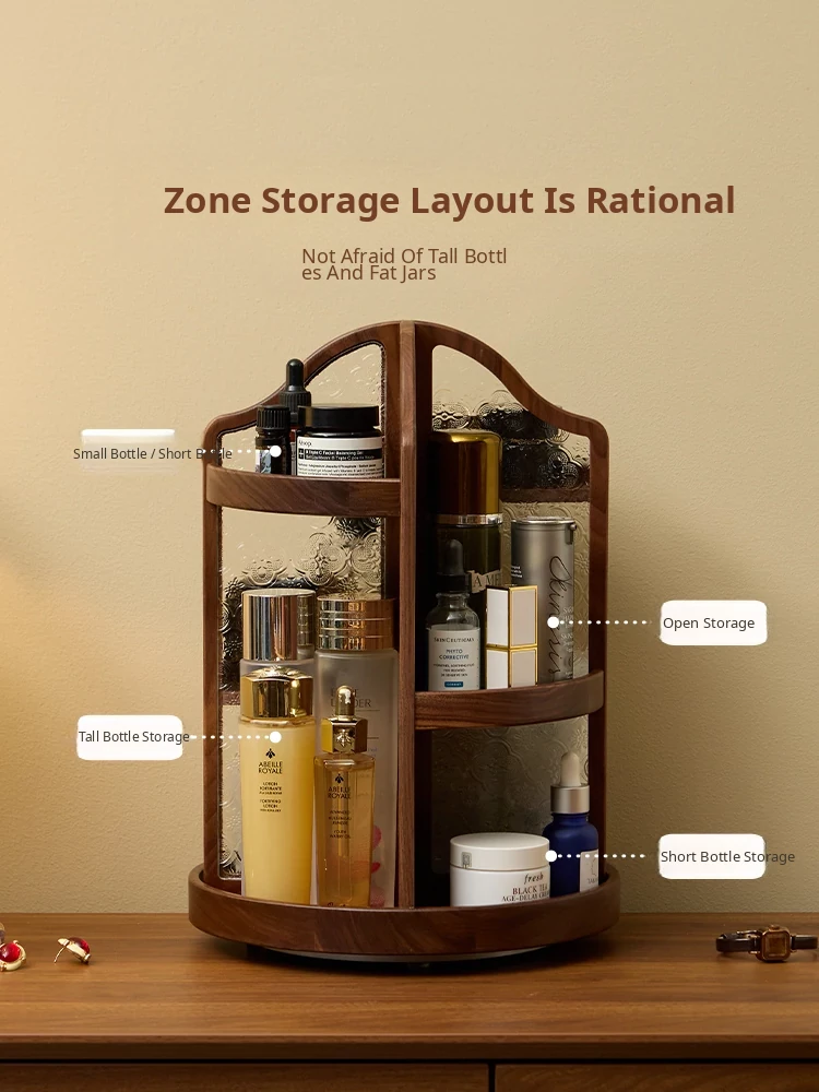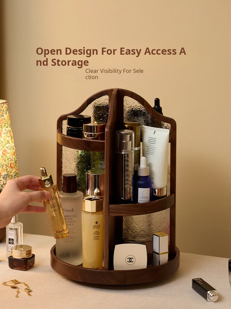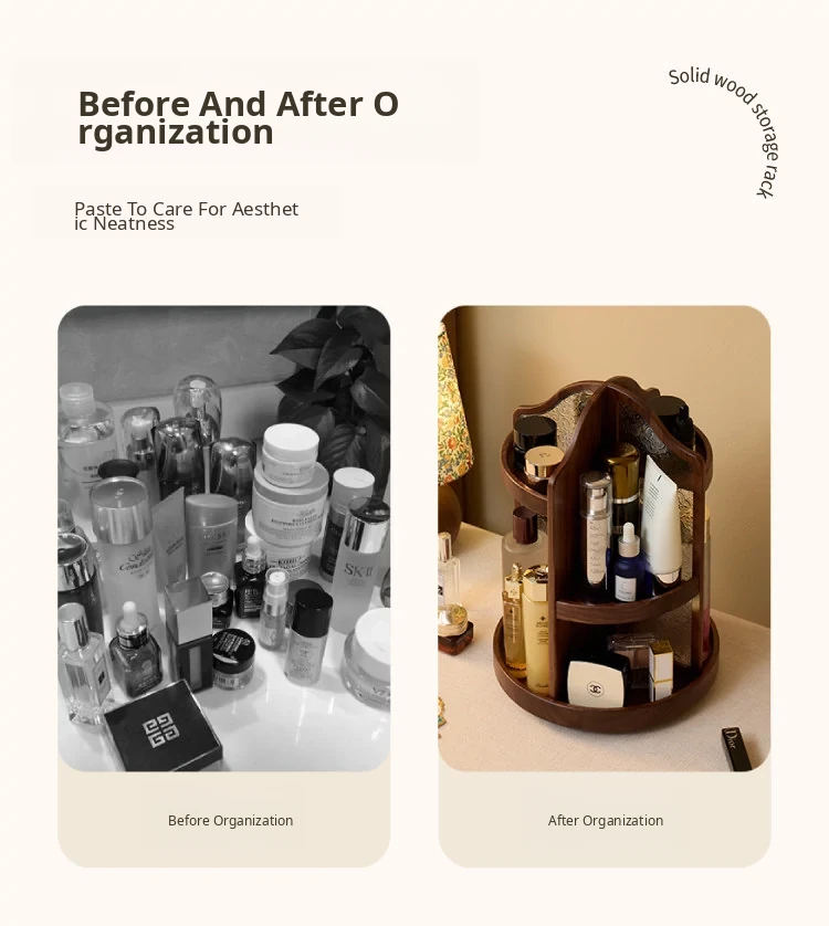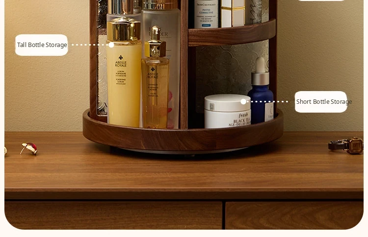 Vanhan Premium Solid Wood Cosmetic Organizer - 2025 New Large Capacity Rotating Perfume Rack for Elegant Desktop Storage