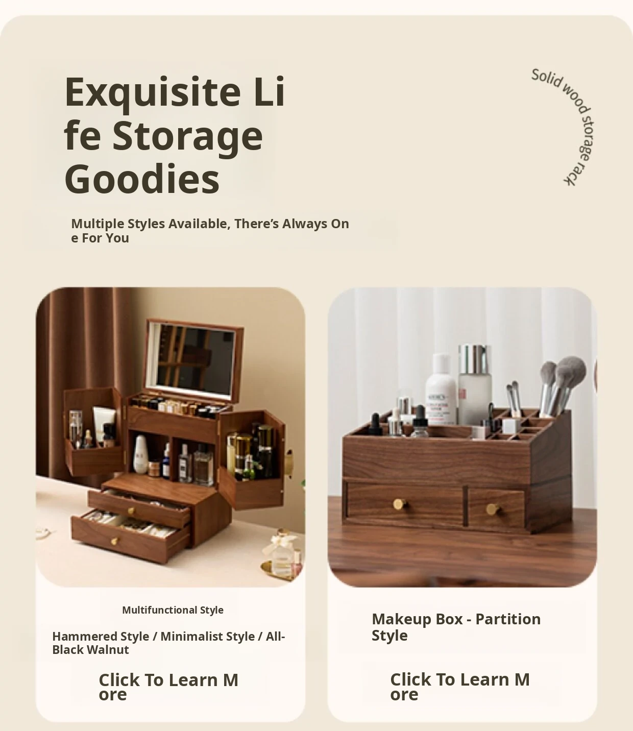 Flower Makeup Box Multi-Layered North American Black Walnut