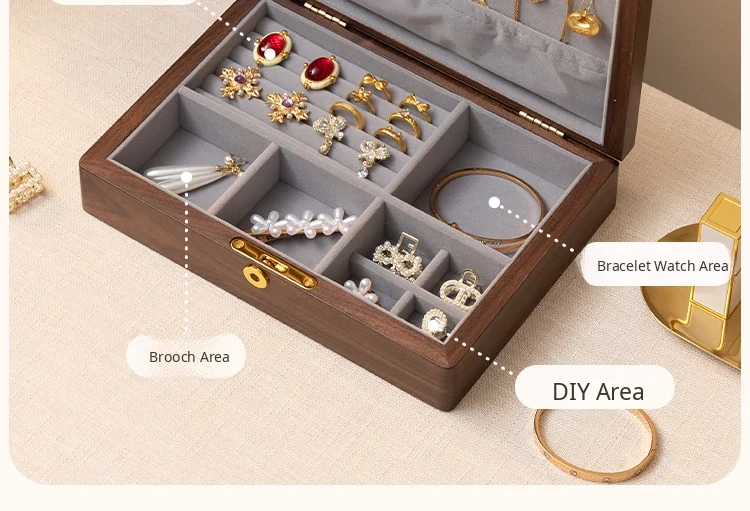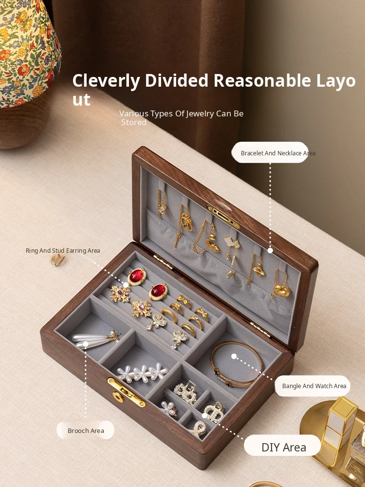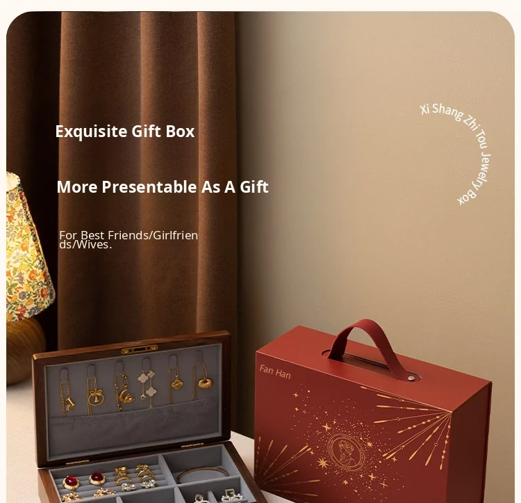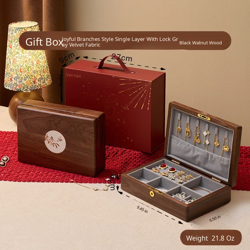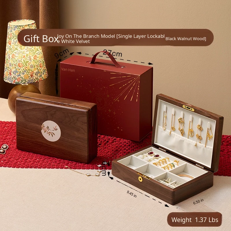 Vanhan Premium Solid Wood Jewelry Box with Lock - Elegant New Year Gift for Rings, Necklaces, and Gold Jewelry Storage