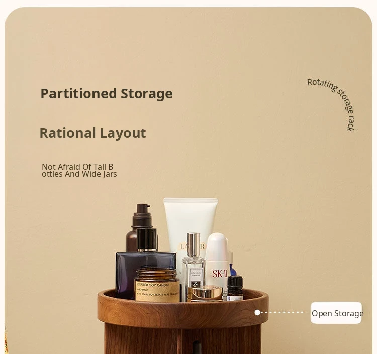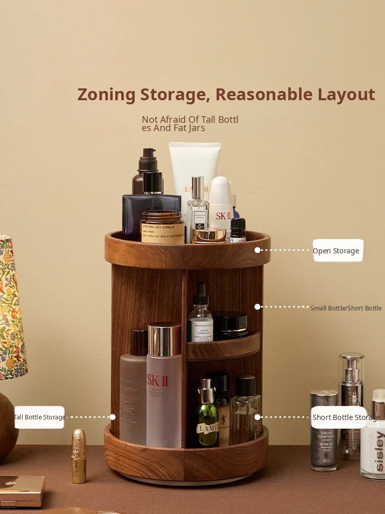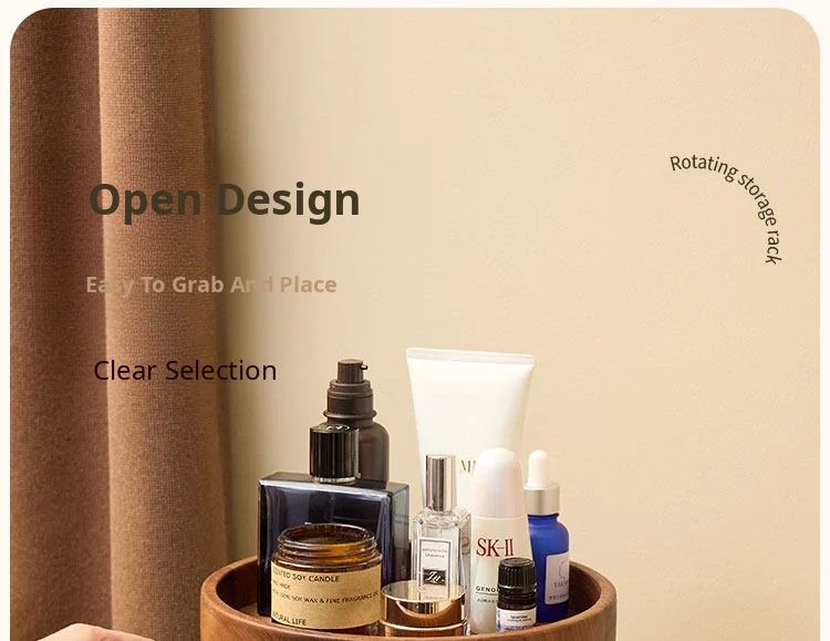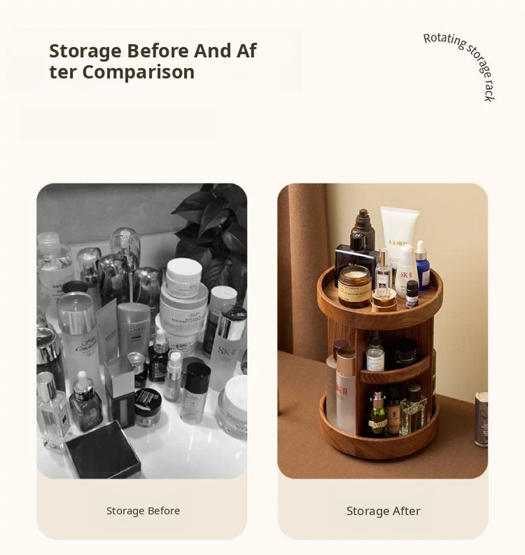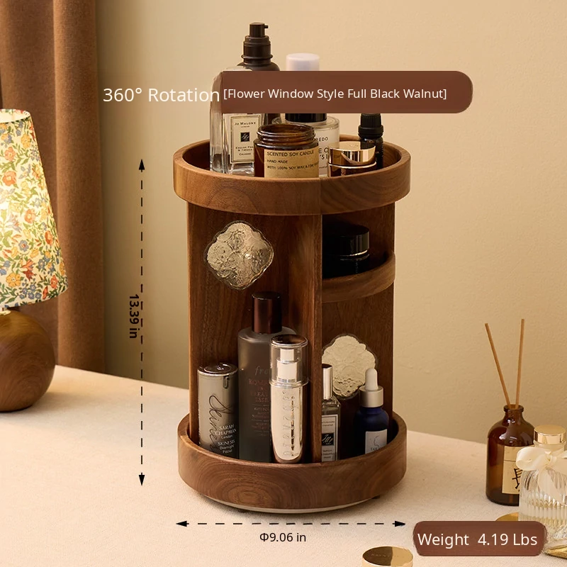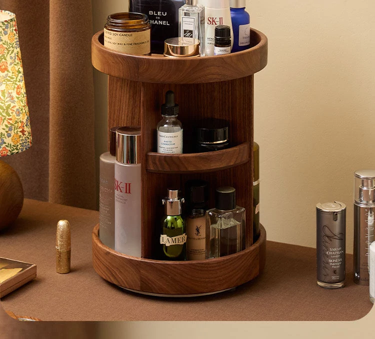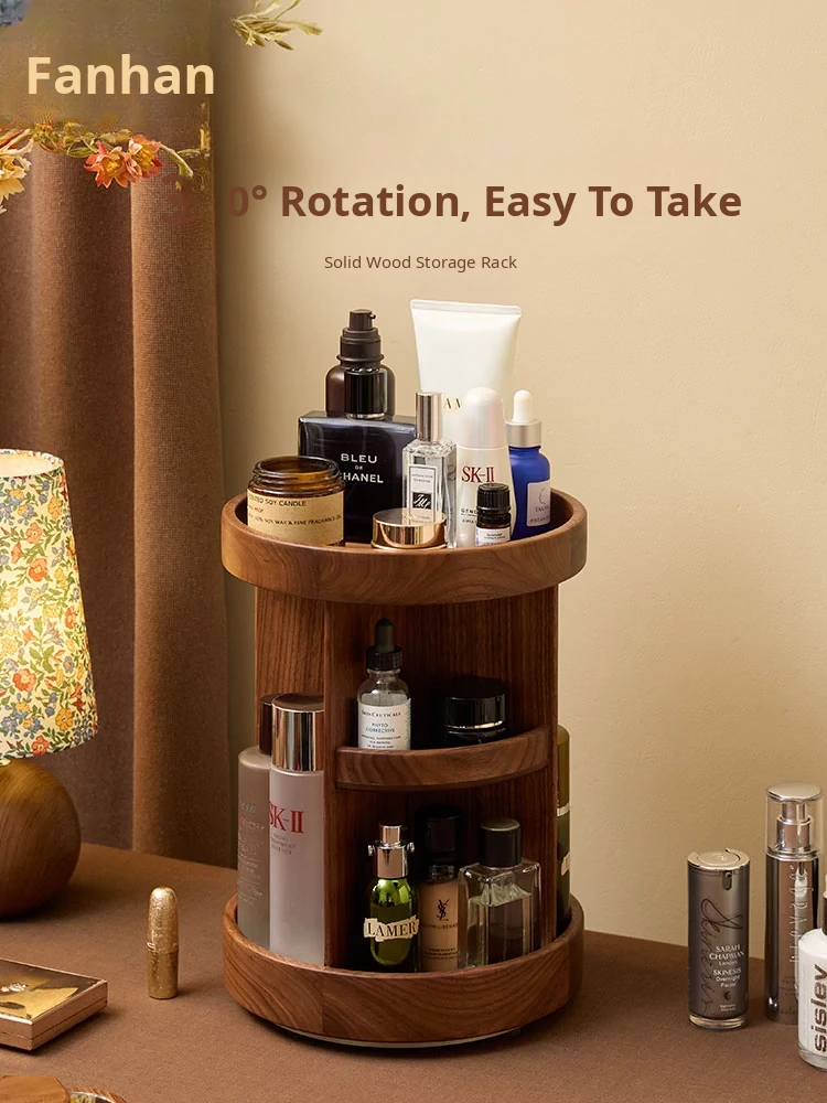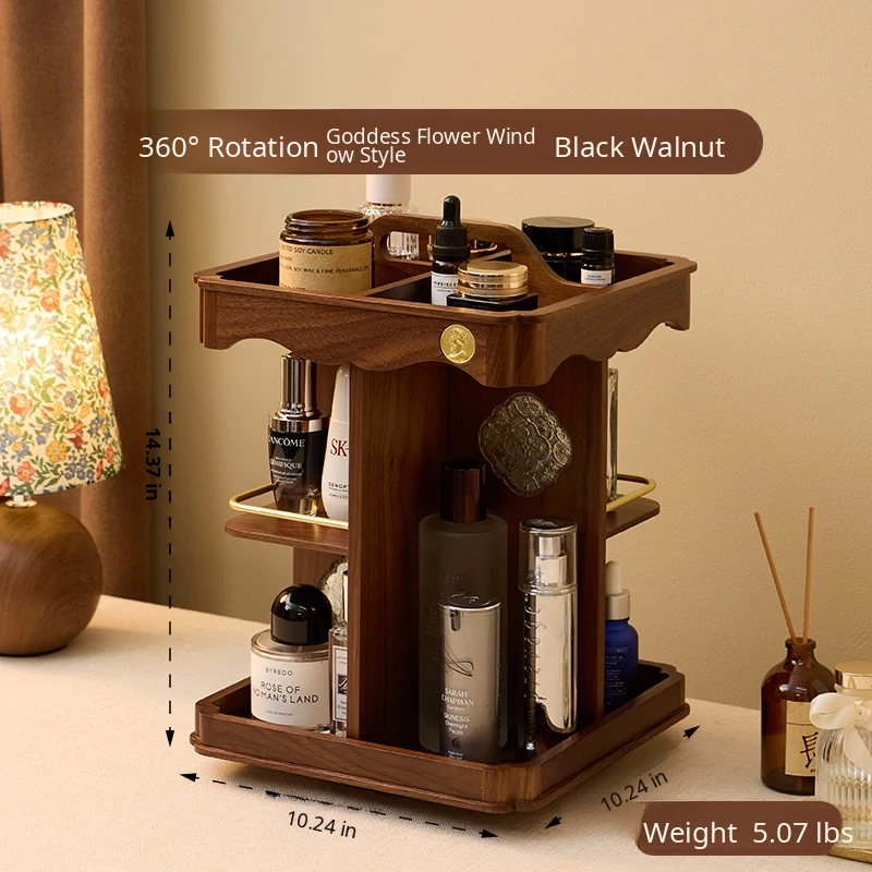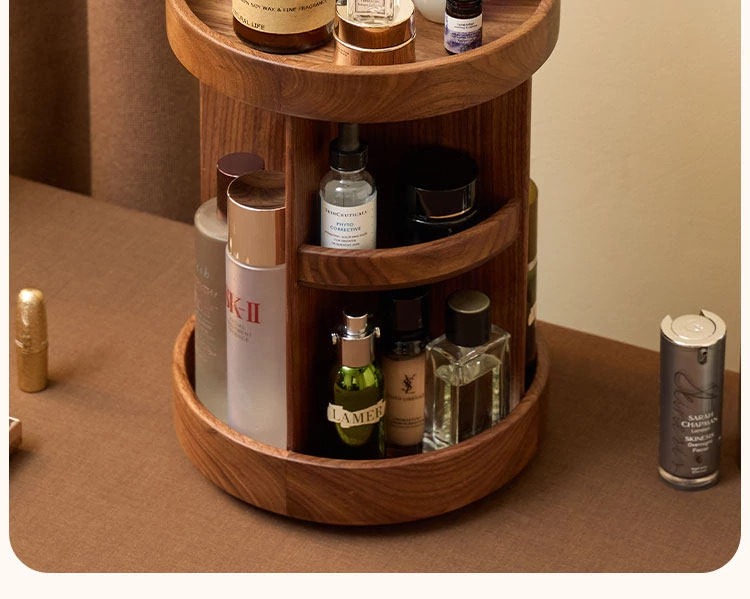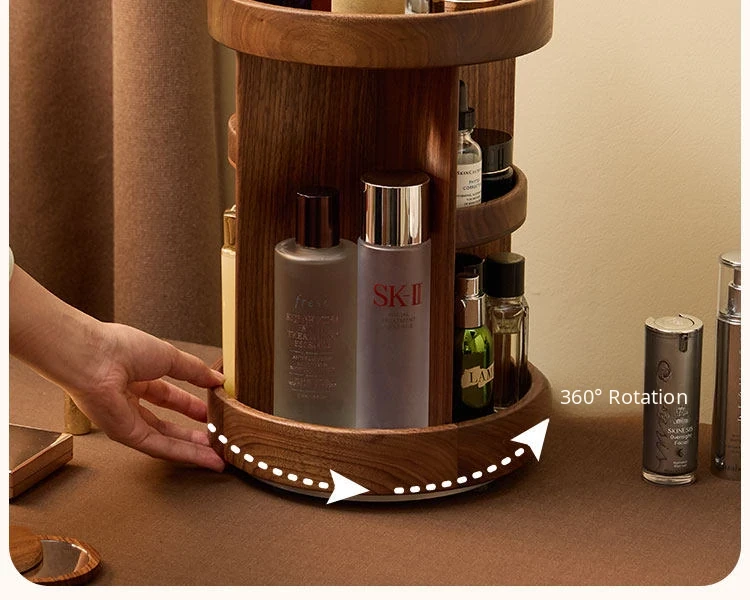 Vanhan Premium Solid Wood Rotating Makeup Organizer - Elegant Vanity Storage for Perfumes and Skincare Products, Perfect for a Luxurious Touch in Your Dressing Area