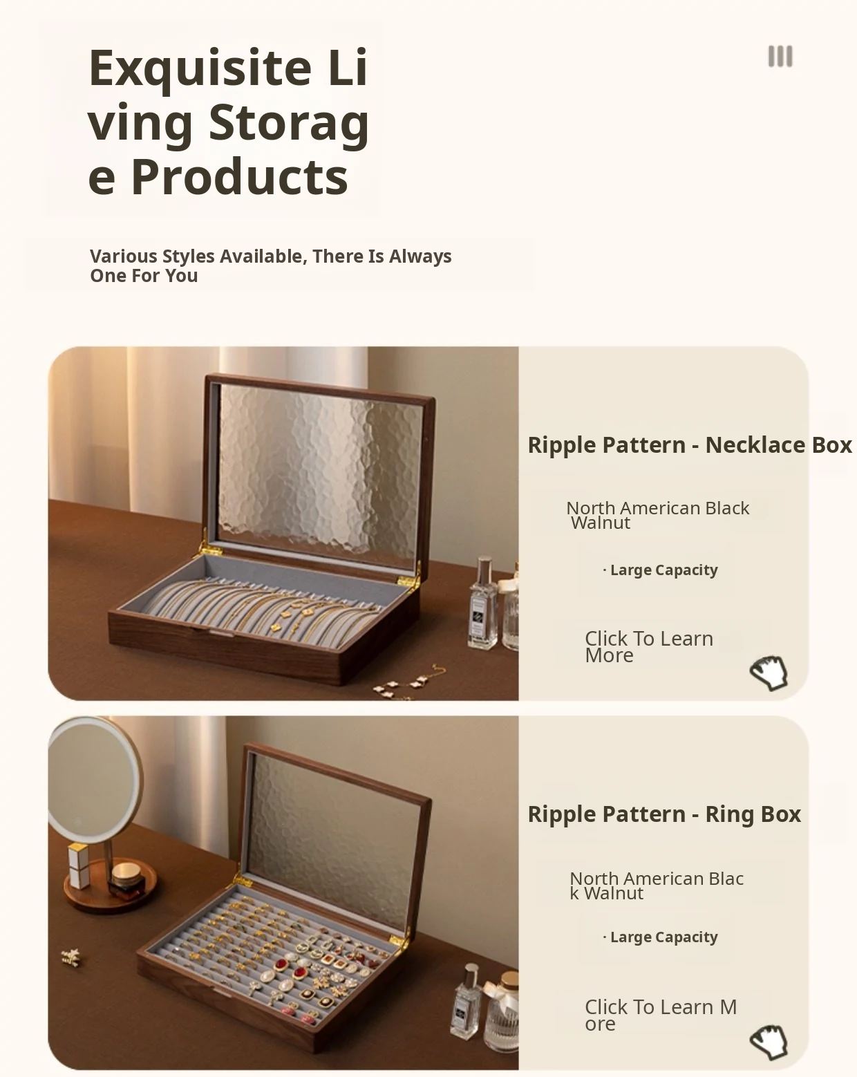 Bracelet Box + Necklace Box + Ring Box + Earring Box North American Black Walnut