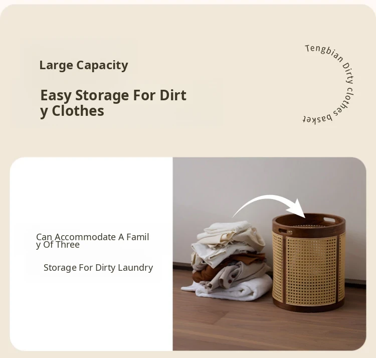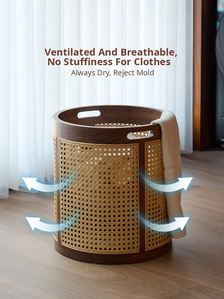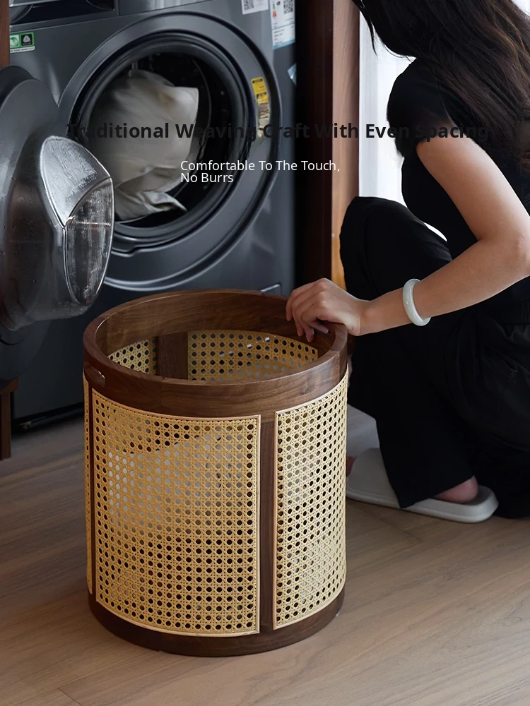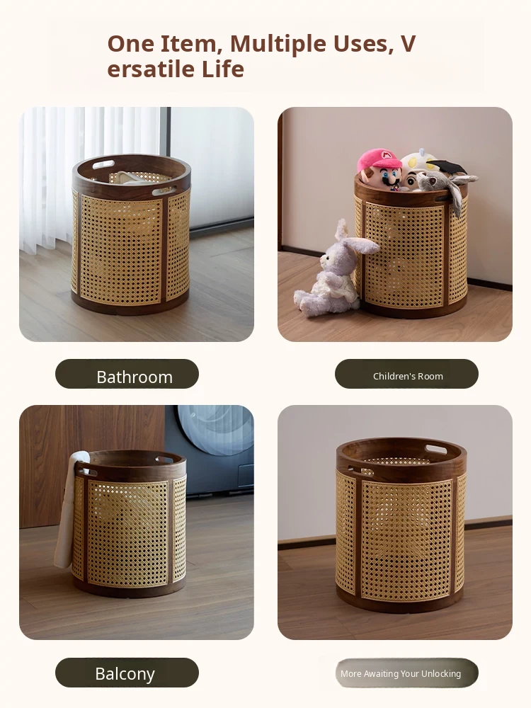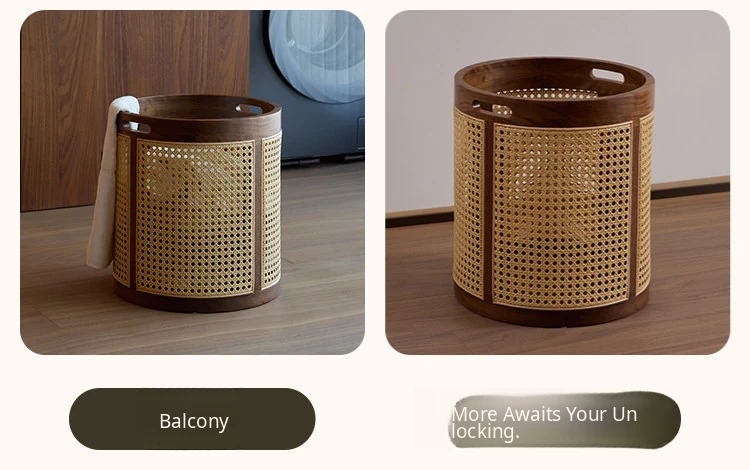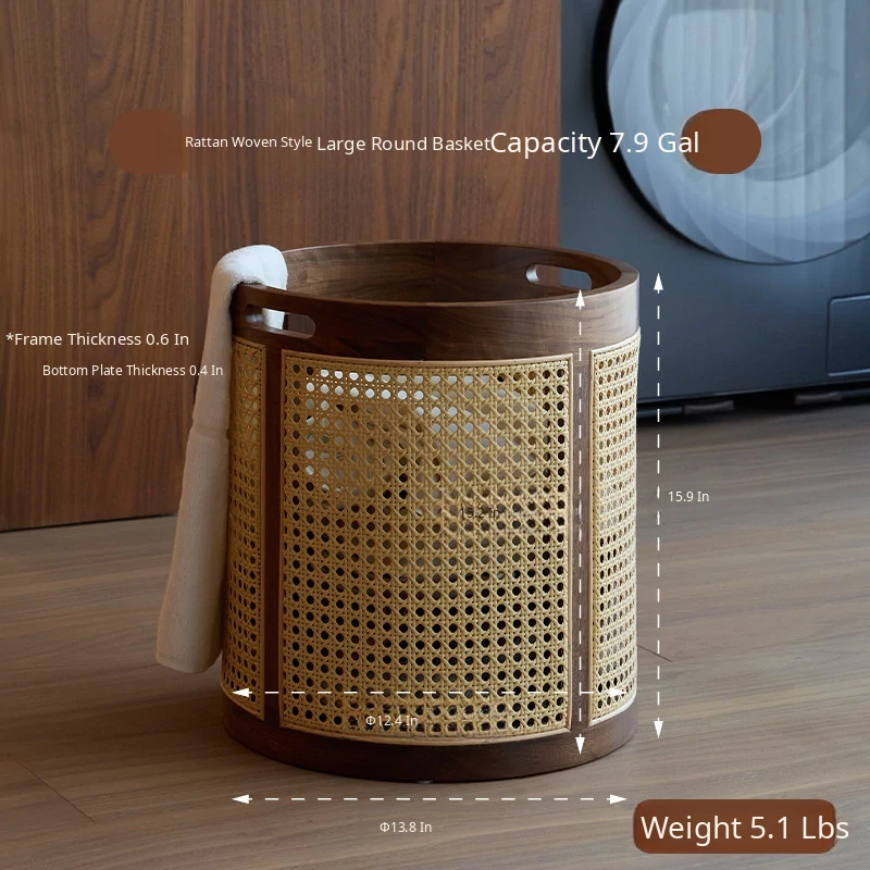Vanhan Rattan Laundry Basket - Stylish & Elegant Wooden Hamper for Home Use, Perfect for Bathroom Storage, Japanese Design, High-Quality and Chic Laundry Solution