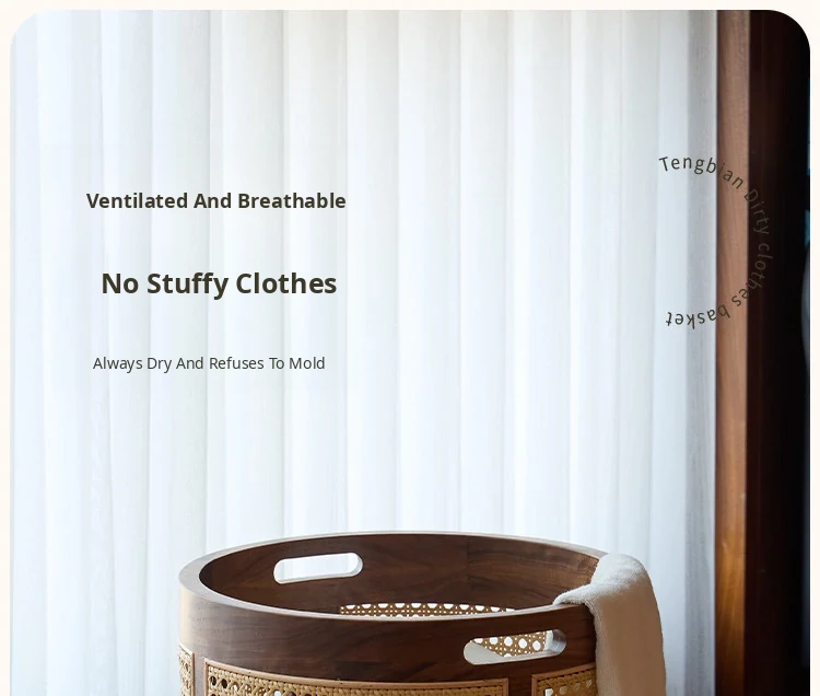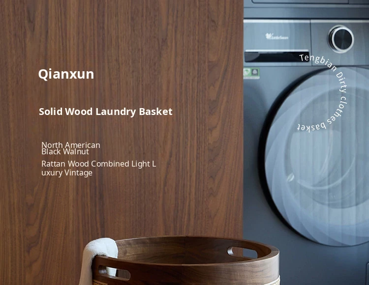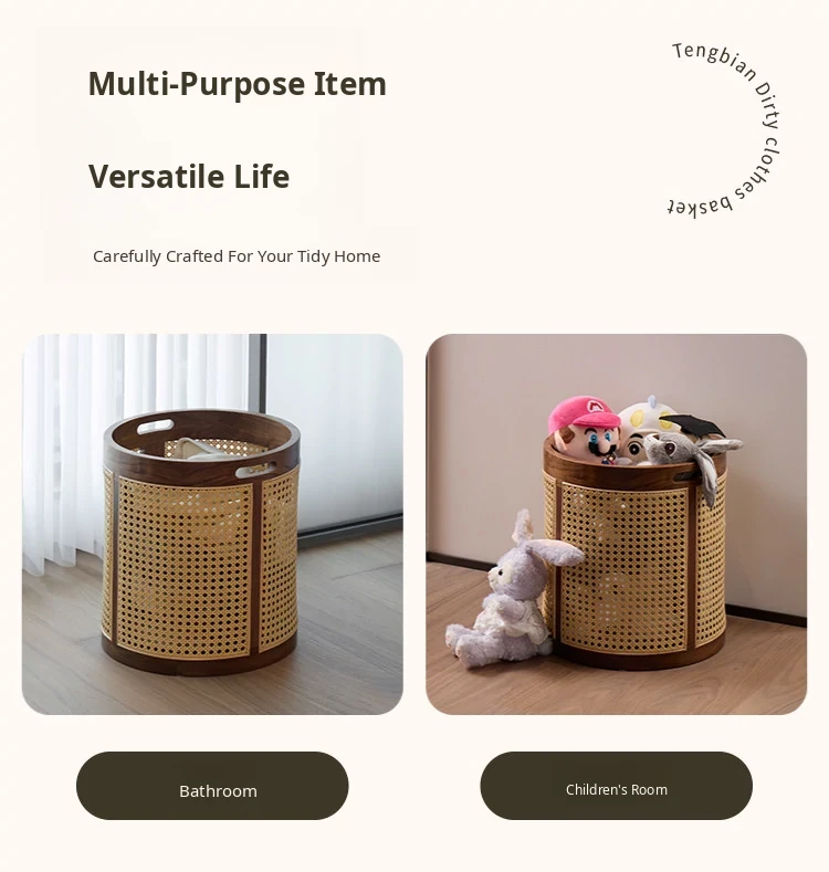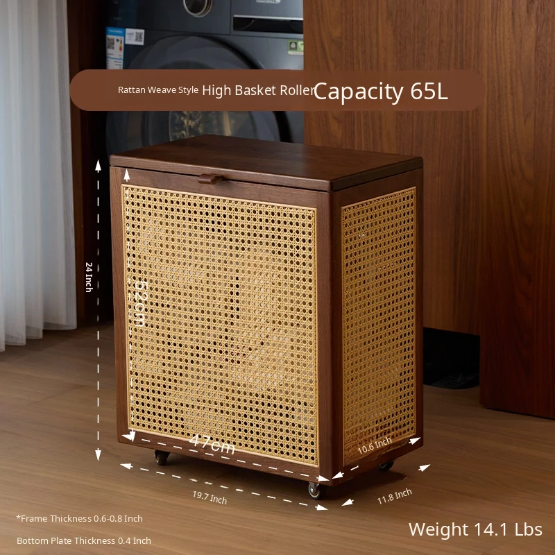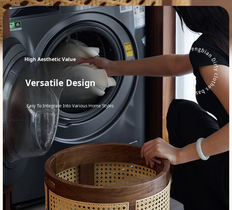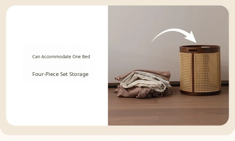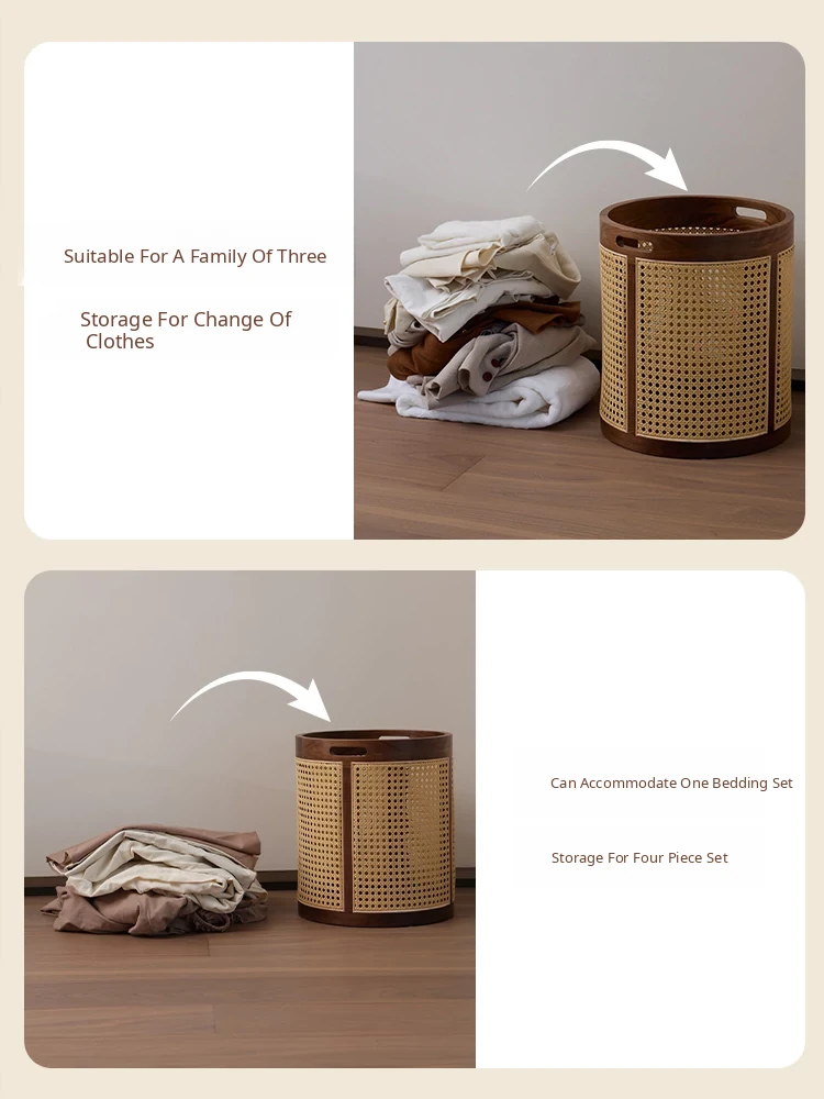 Vanhan Rattan Laundry Basket - Stylish & Elegant Wooden Hamper for Home Use, Perfect for Bathroom Storage, Japanese Design, High-Quality and Chic Laundry Solution