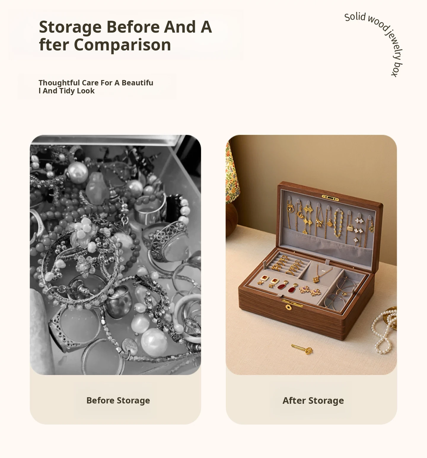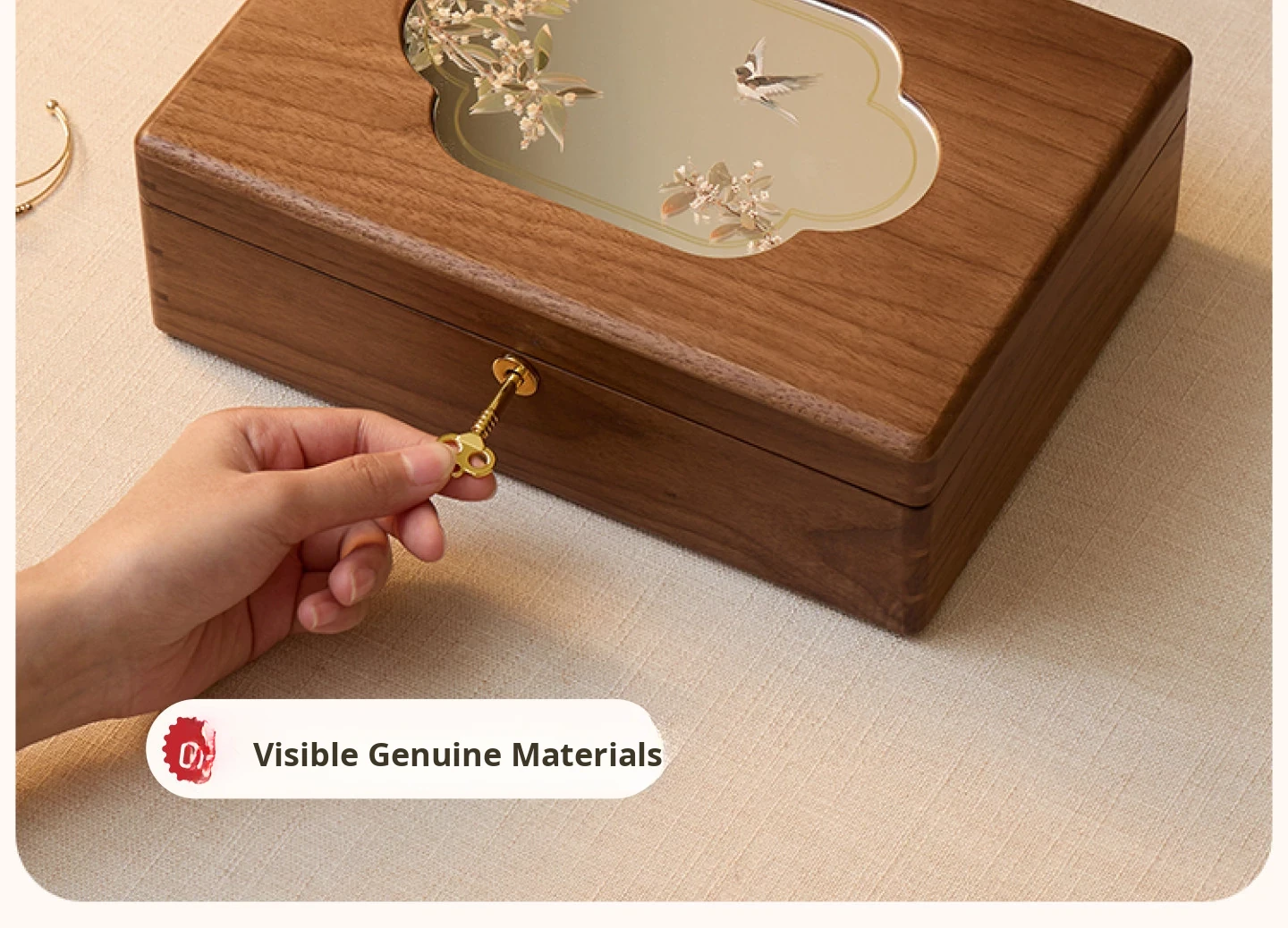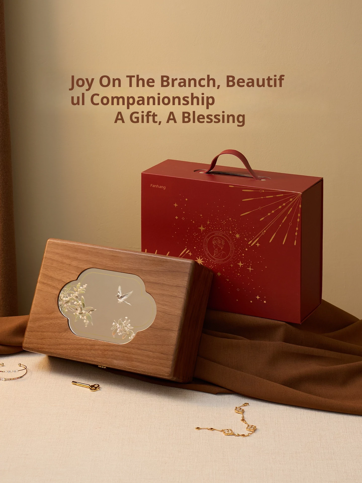 Vanhan Solid Wood Jewelry Box with Lock - Elegant New Chinese Style Antique Design, Perfect for Weddings and New Year Gifts, Ideal for Storing Gold Accessories and Treasures