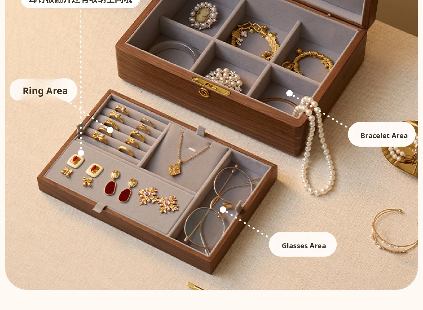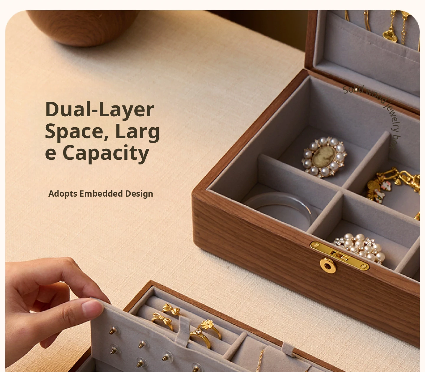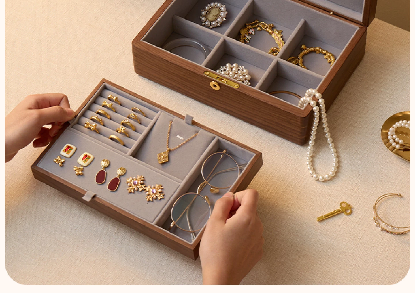 Vanhan Solid Wood Jewelry Box with Lock - Elegant New Chinese Style Antique Design, Perfect for Weddings and New Year Gifts, Ideal for Storing Gold Accessories and Treasures