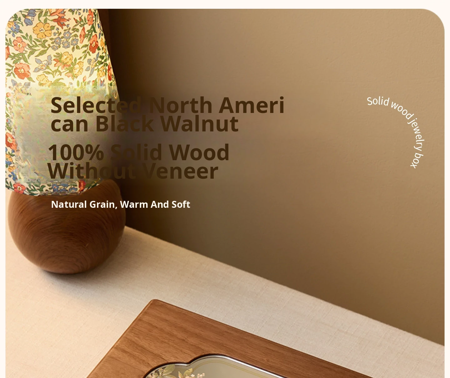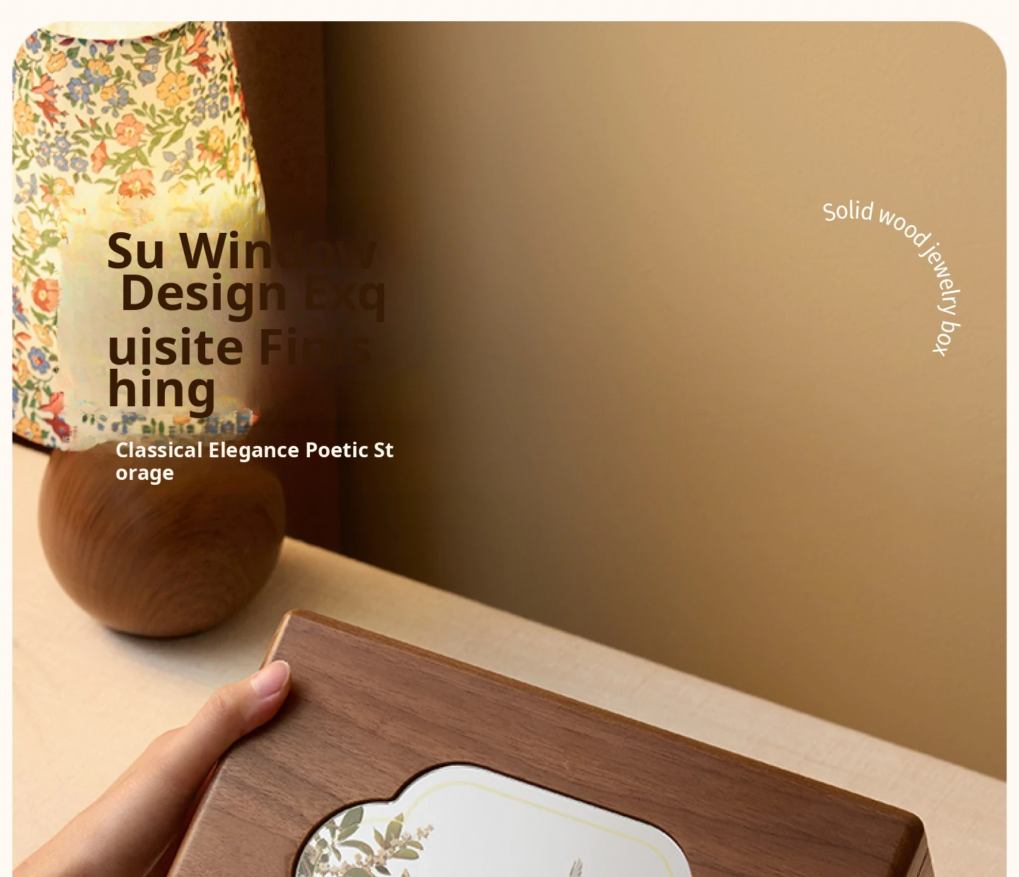 Yuezhi Jewelry Box, Window Lattice Design, Small Size, Lockless, White Velvet Lining, North American Black Walnut Wood