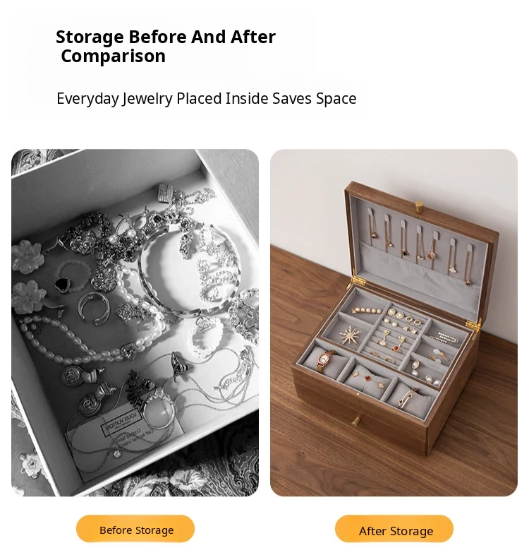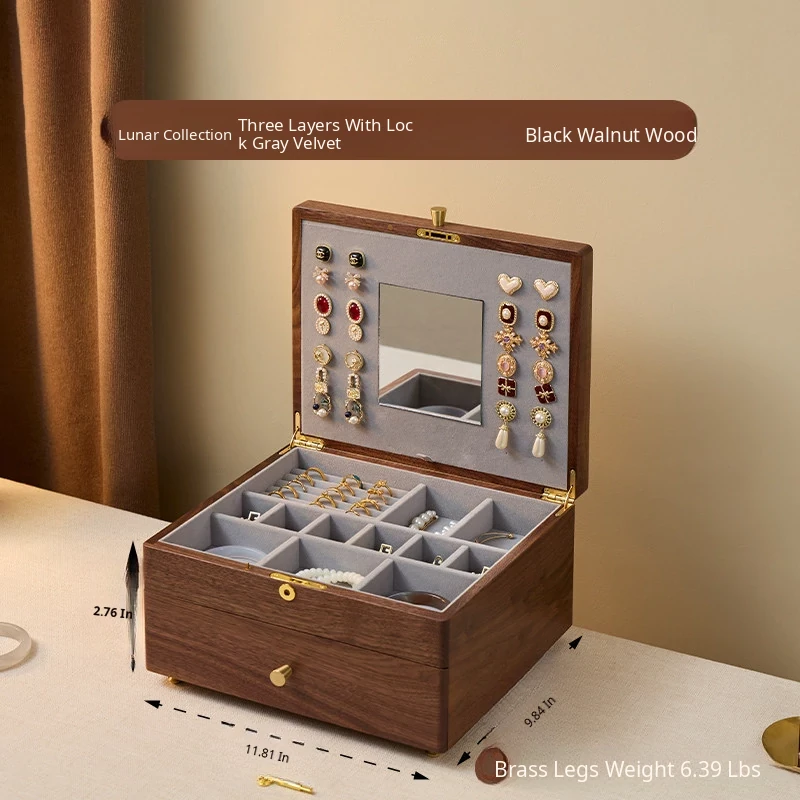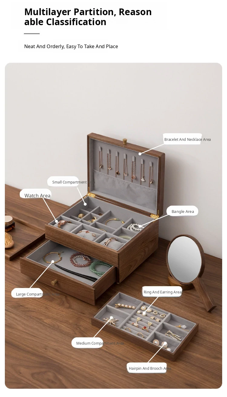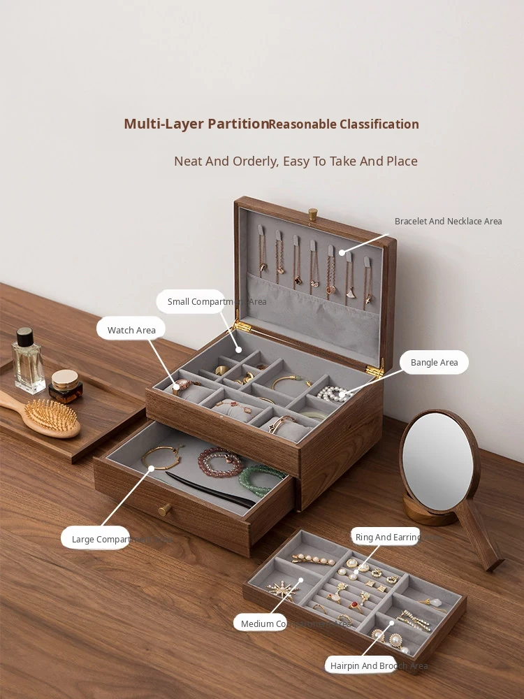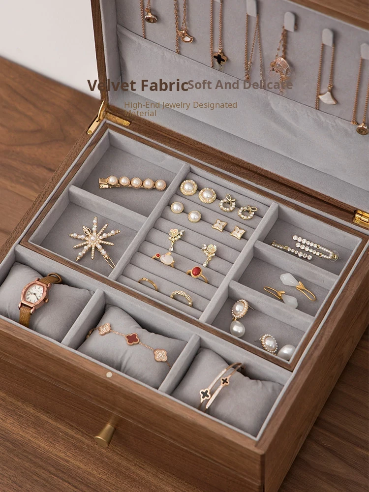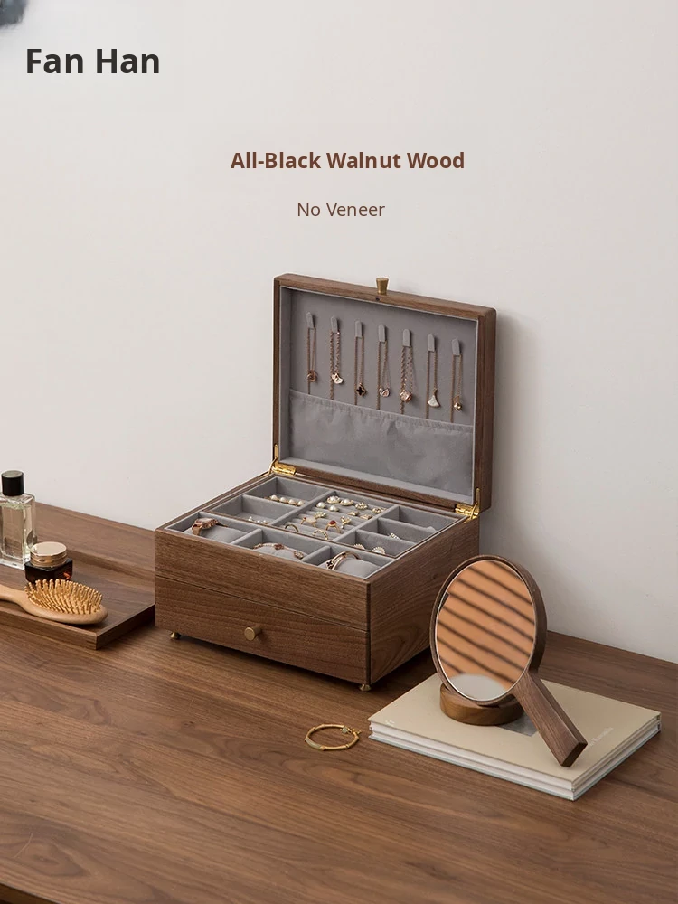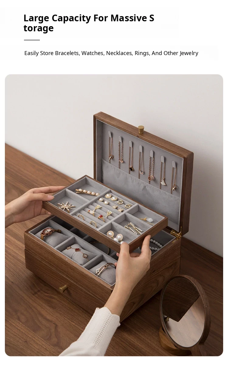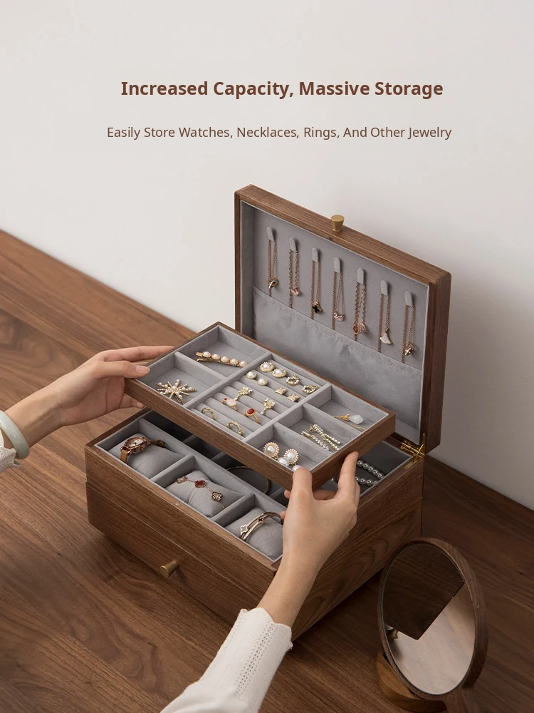 Vanhan Solid Wood Jewelry Organizer Box - Elegant and Spacious Multi-Layer Design with Drawers, Perfect for New Year Gifts and Special Occasions