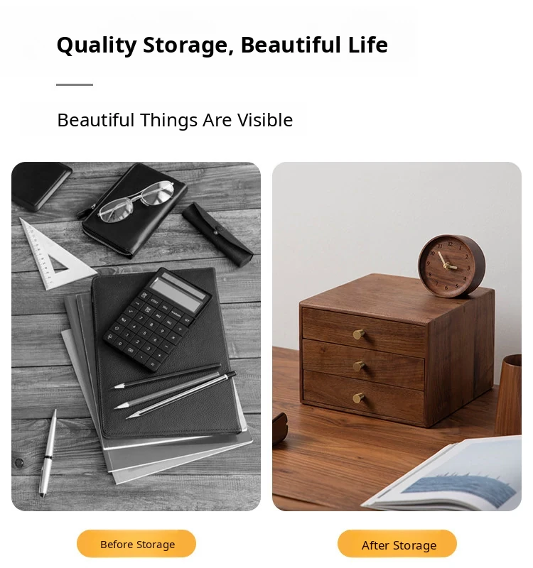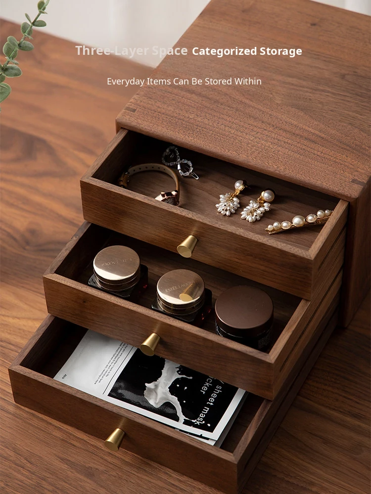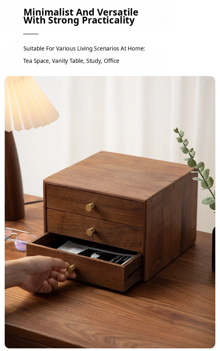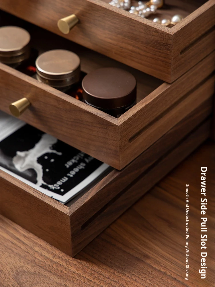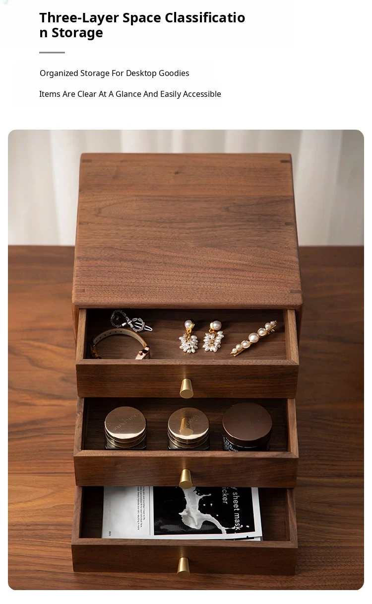 VANHAN Solid Wood Multi-Layer Drawer Desktop Organizer - Stylish Storage Box for Home and Office, Perfect for Files and Miscellaneous Items