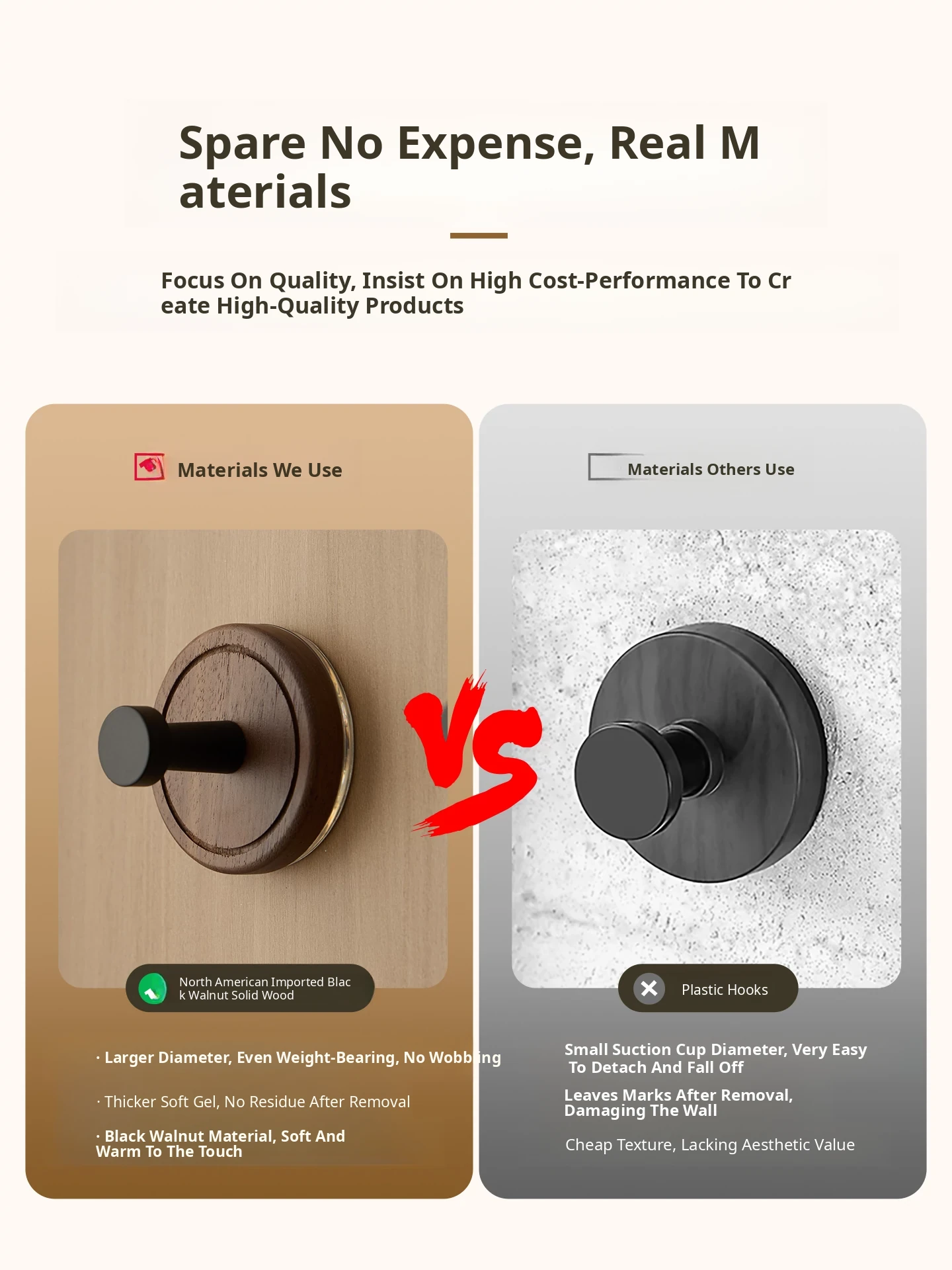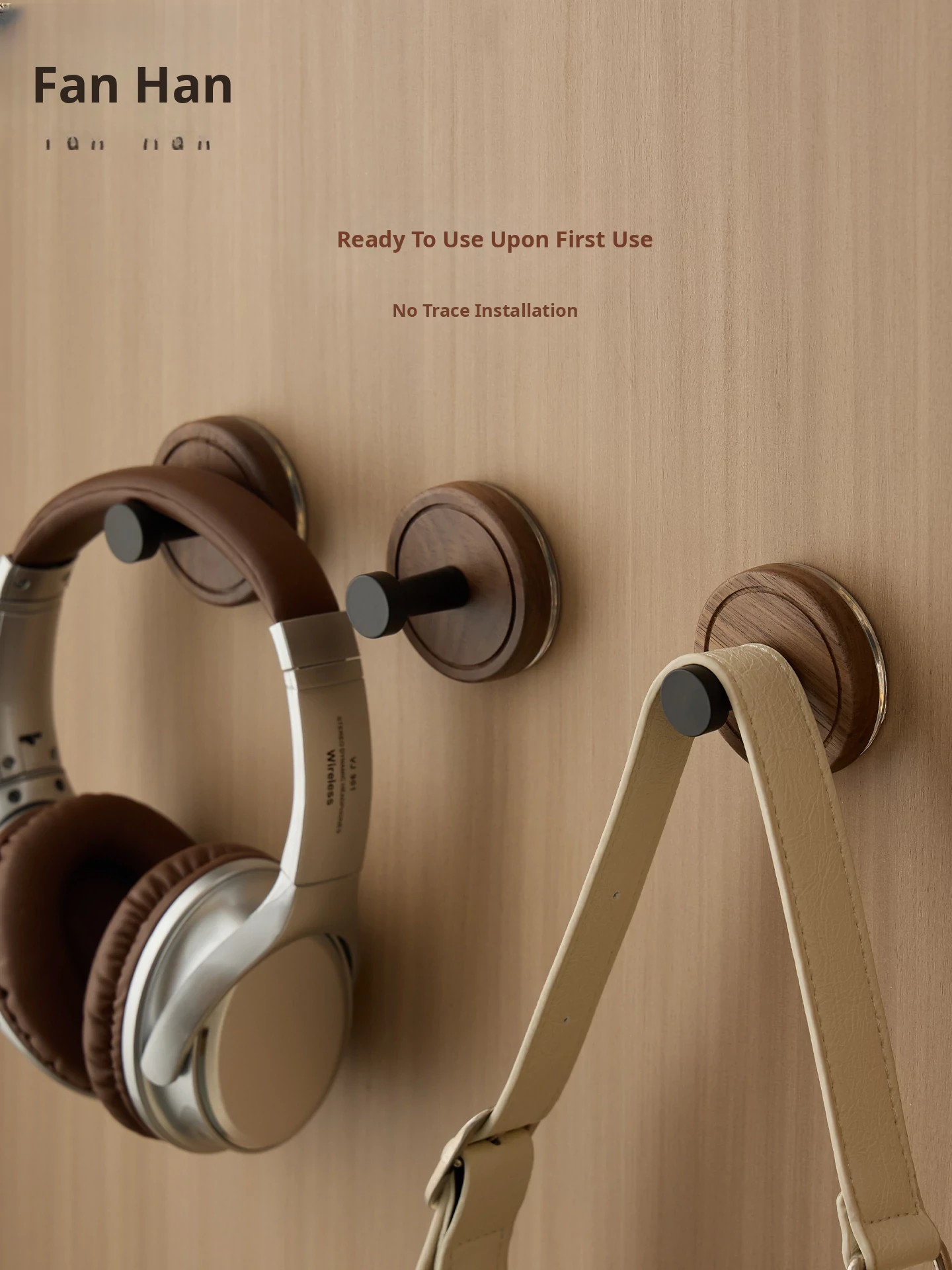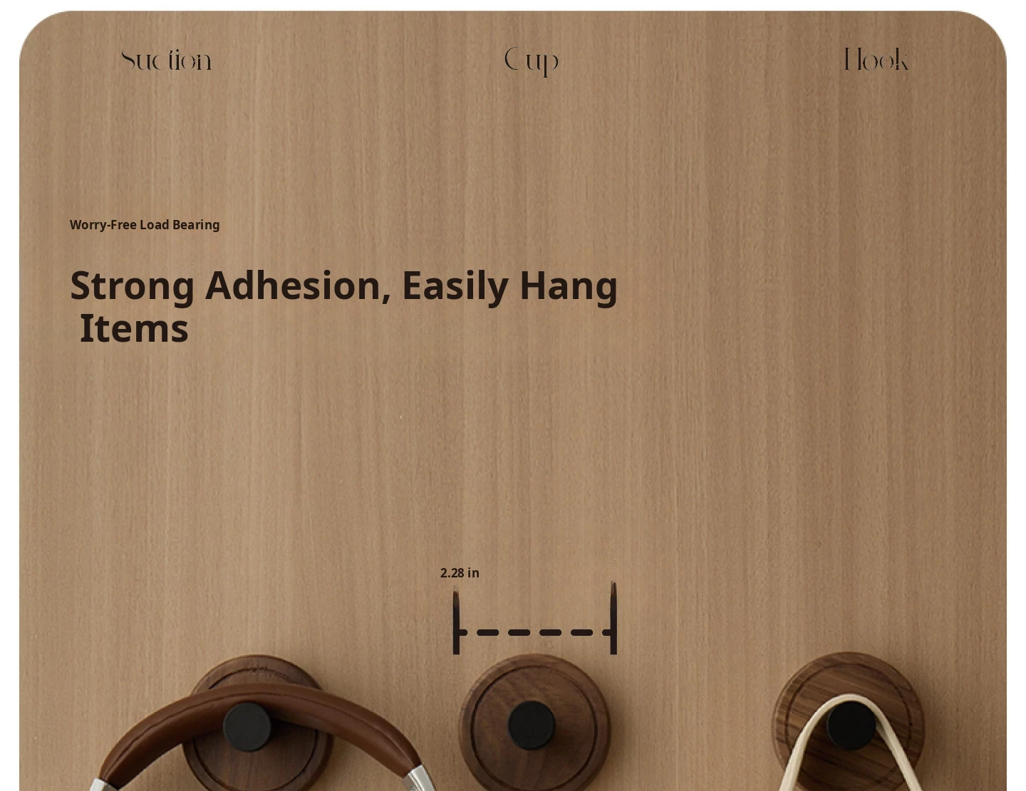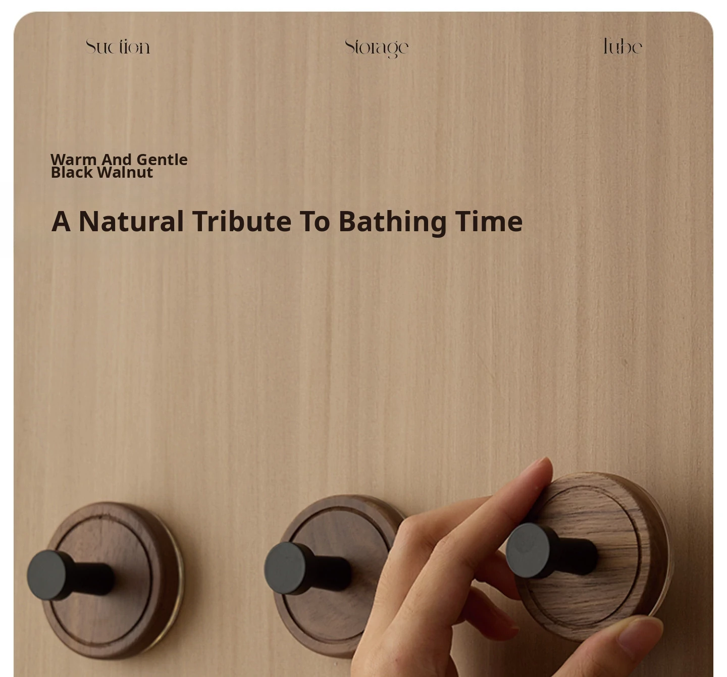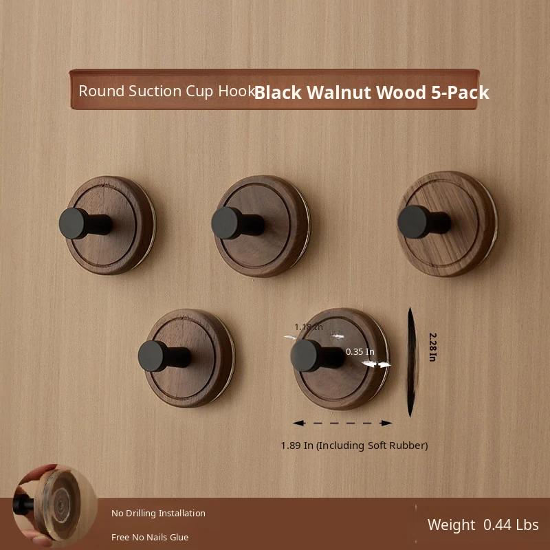 Vanhan Solid Wood Suction Cup Hooks - No Drilling, Heavy-Duty, Seamless Adhesive Hooks for Bathroom & Kitchen, Made of Walnut Wood, Strong and Stylish!