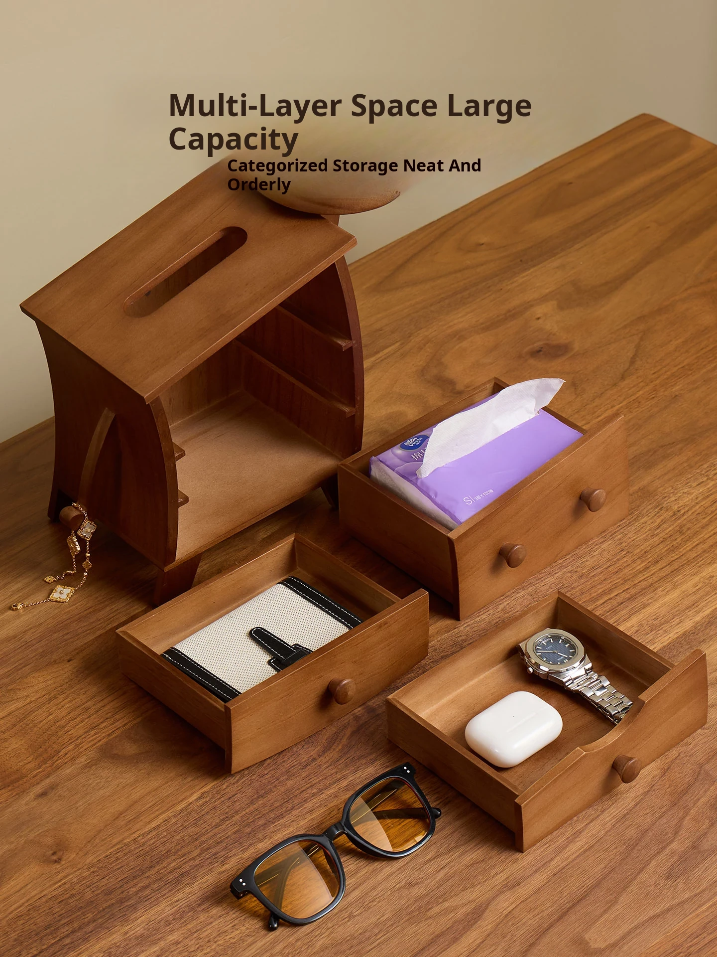 Vanhan Solid Wood Tissue Box - Multifunctional Creative Decor, Perfect for Homewarming and New Year Gifts, Stylish Wooden Storage Organizer for Desktop and Entryway