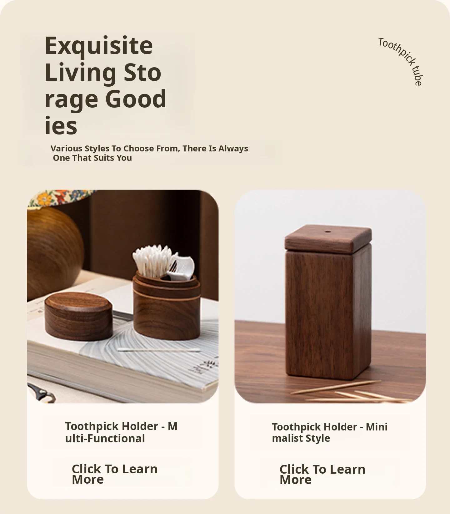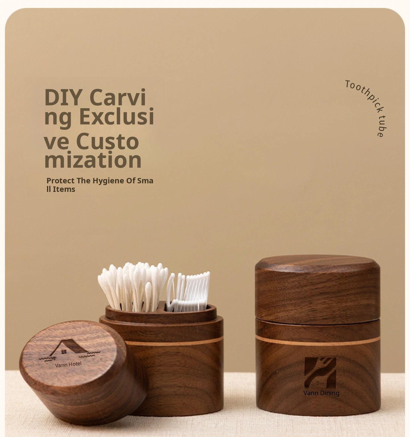 Vanhan Solid Wood Toothpick Holder 2025 New Design - Stylish Toothpick Container for Home Use, Elegant Luxury Toothpick Box with Cotton Swab Storage.