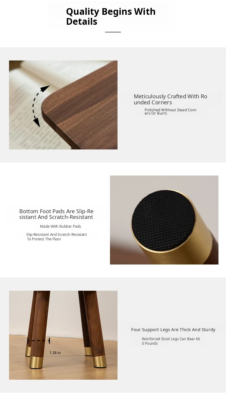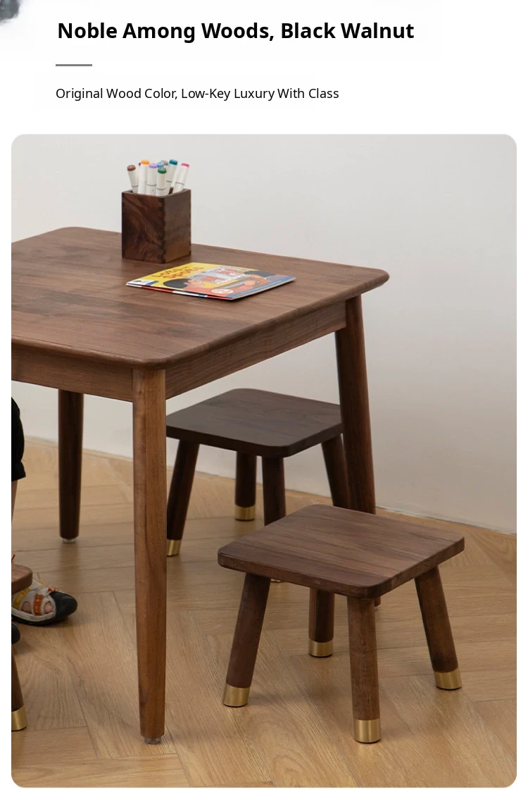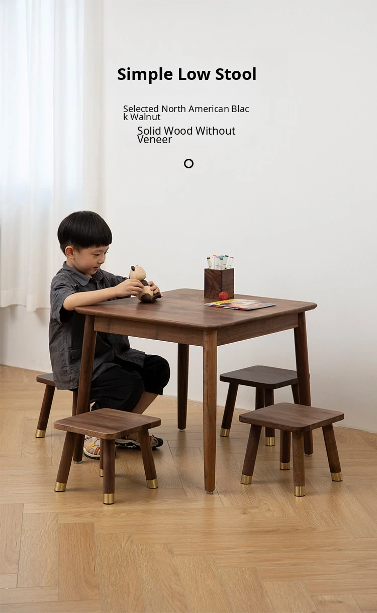Vanhan Walnut Wood Stool - Versatile Square & Round Footrest for Home, Perfect for Kids, Shoe Changing, and More - Solid Wood Construction for Durability and Style