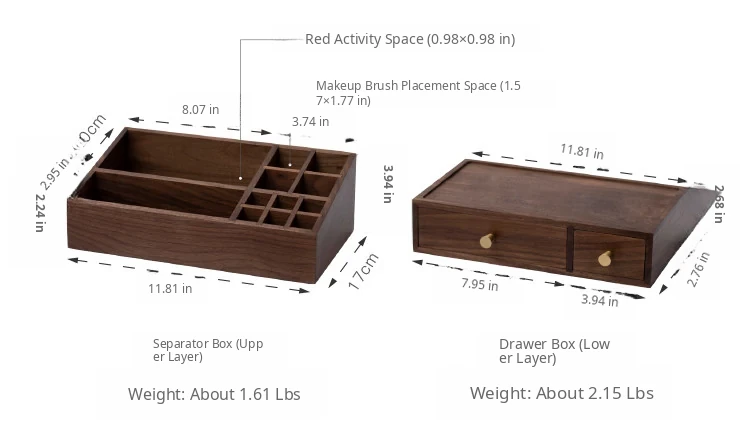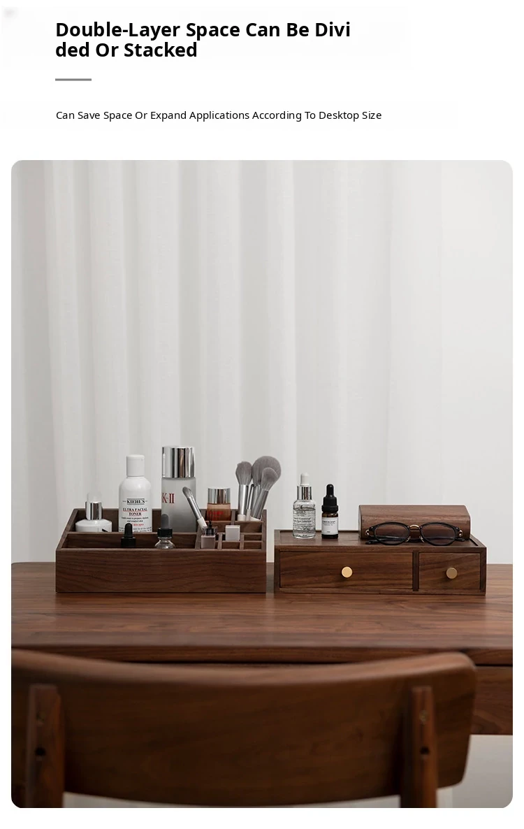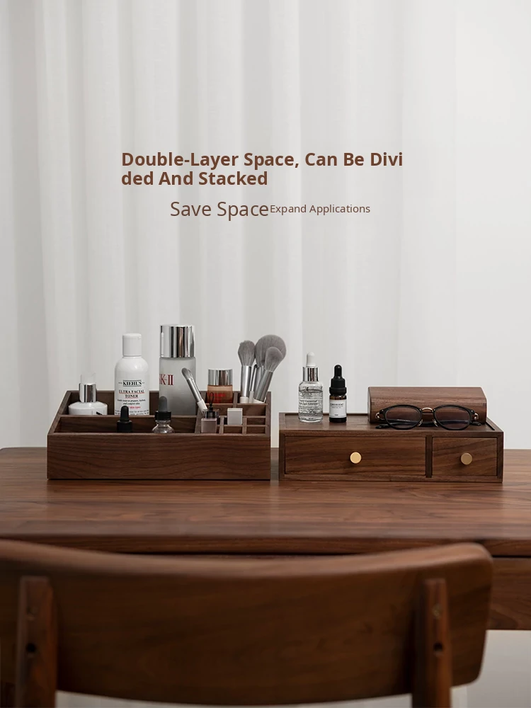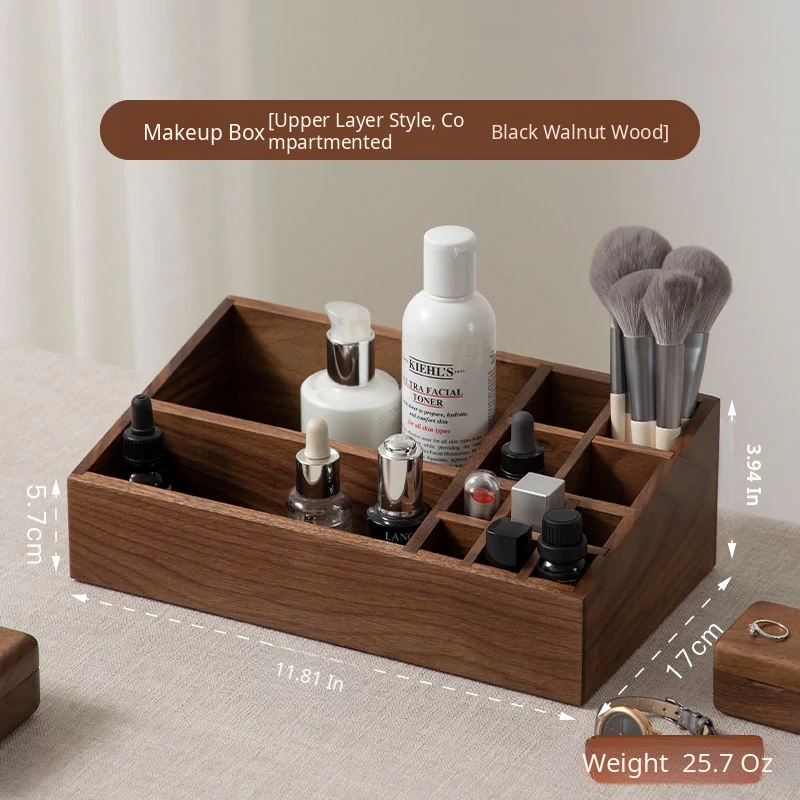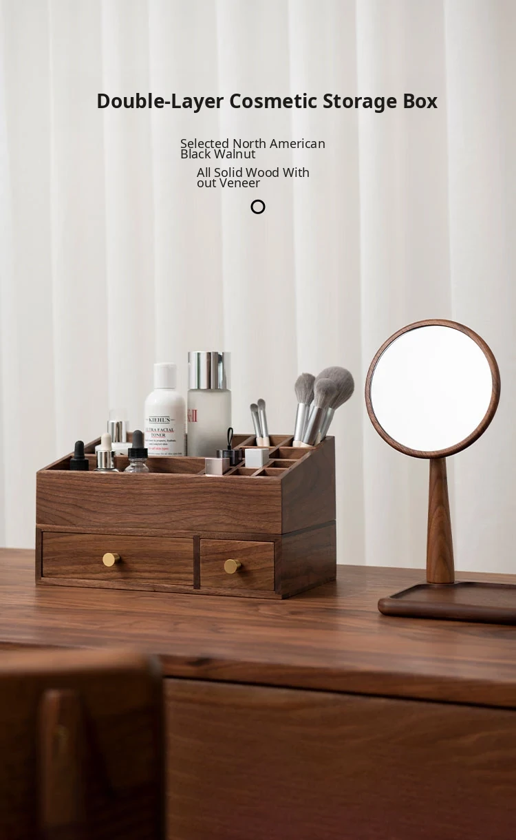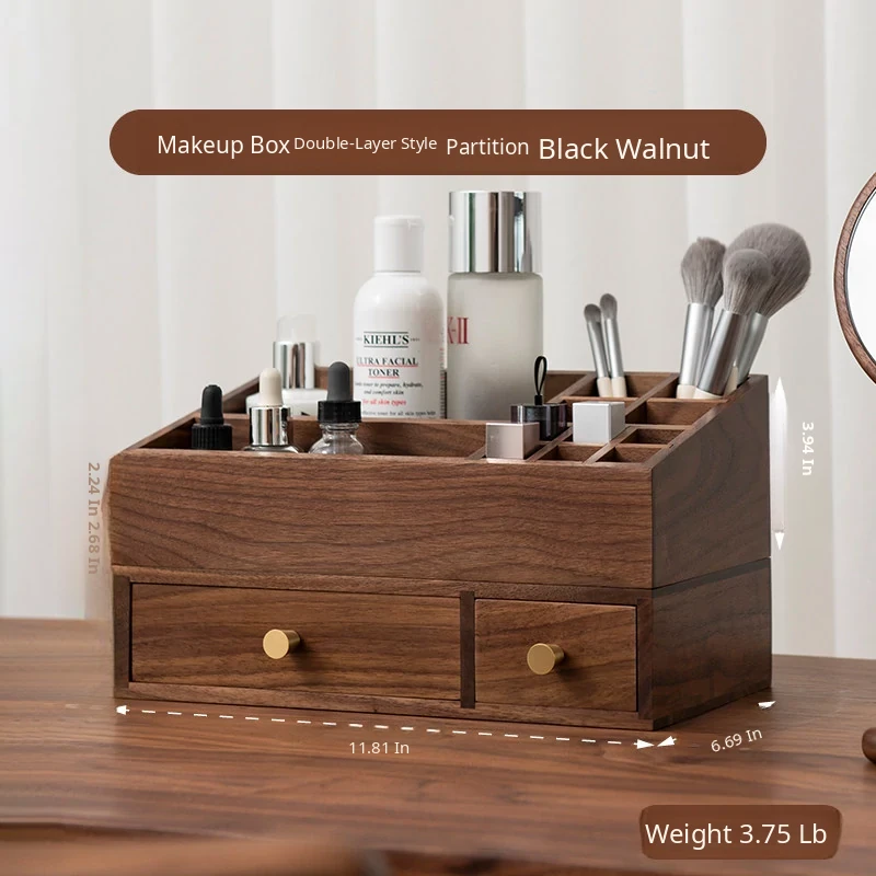 Double Layer Cosmetic Box, Layered Style, North American Black Walnut