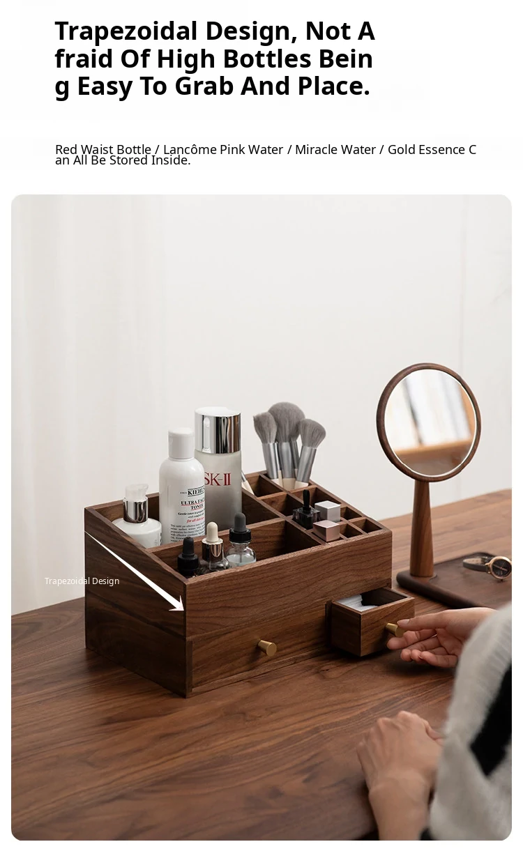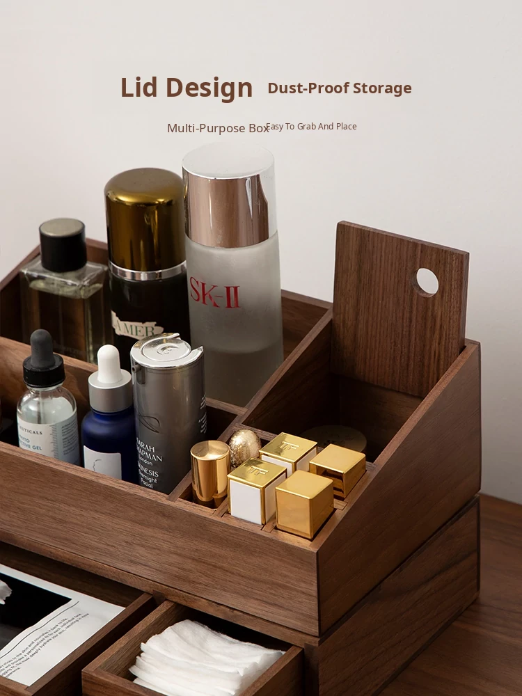 Vanhan Wooden Makeup Organizer with Drawers - Stylish Storage Box for Lipsticks, Masks, and Skincare Products, Perfect for Your Vanity at Home!
