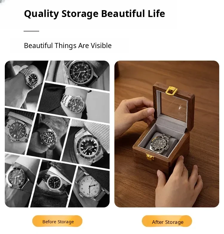 Vanhan Wooden Watch Storage Box - Elegant Transparent Display Case for Single Mechanical Watch, Perfect for Home Use & Gift Packaging - Minimalist Luxury Design