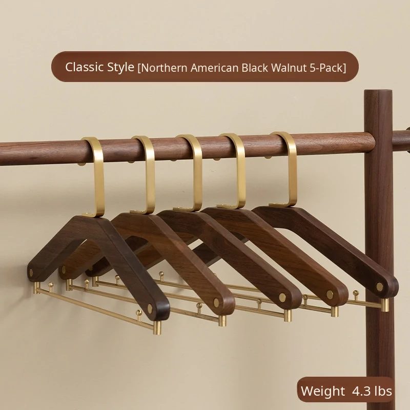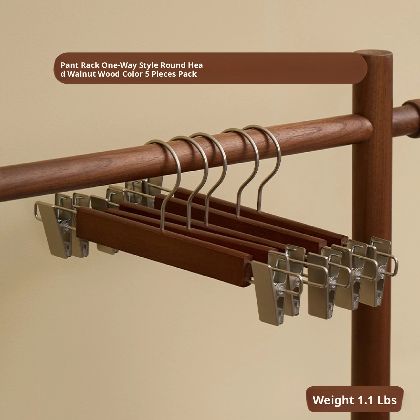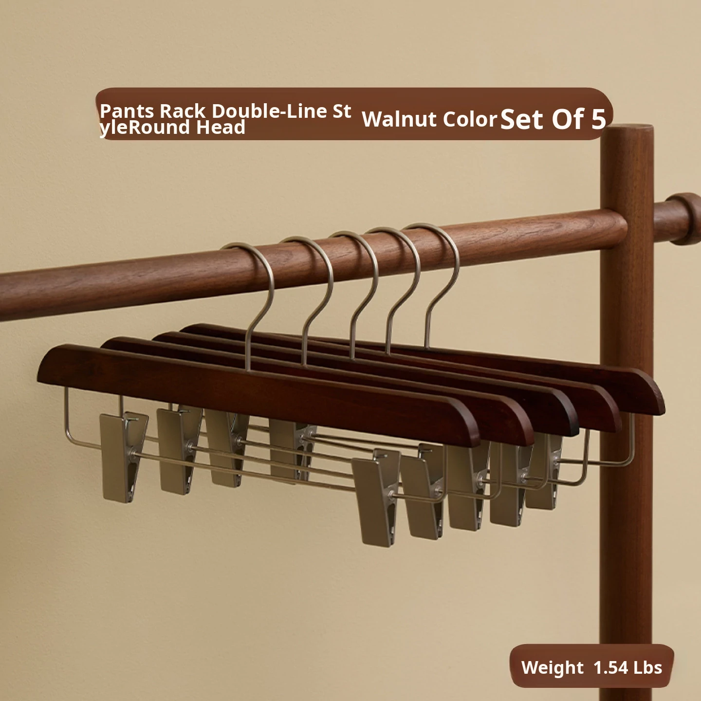 Double-Line Trouser Rack, 5 Pieces [Round Head, Walnut Color]