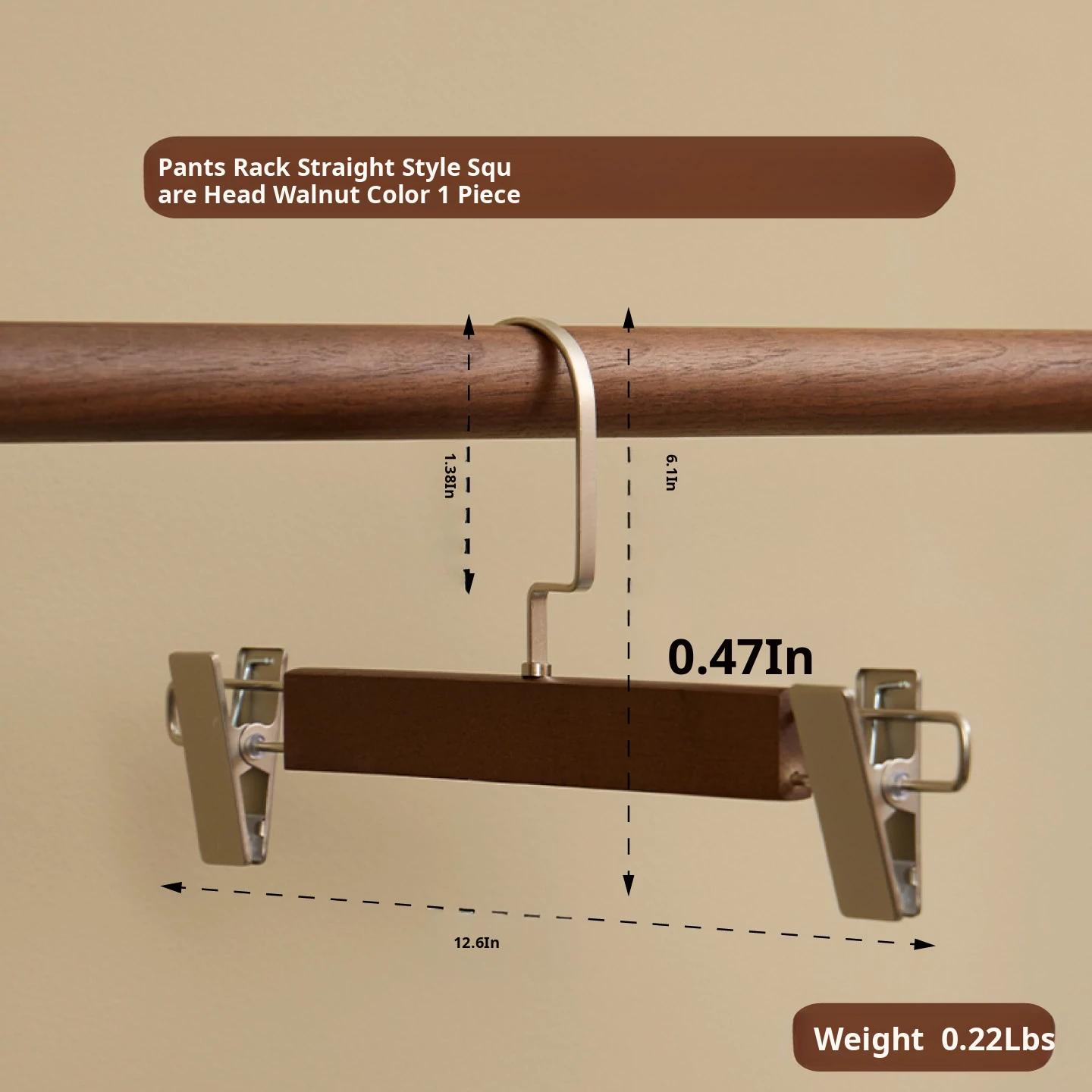 Single Pants Hanger - Round Head, Walnut Finish (Pack of 1)