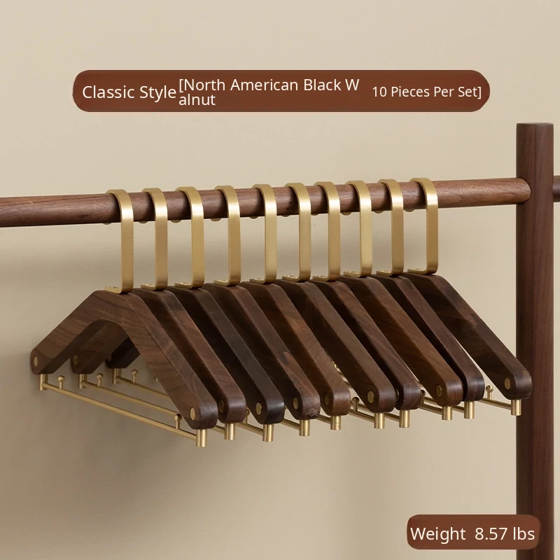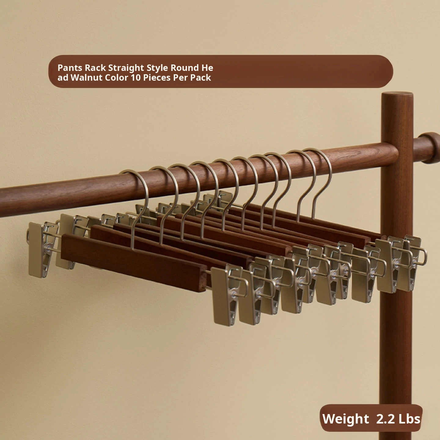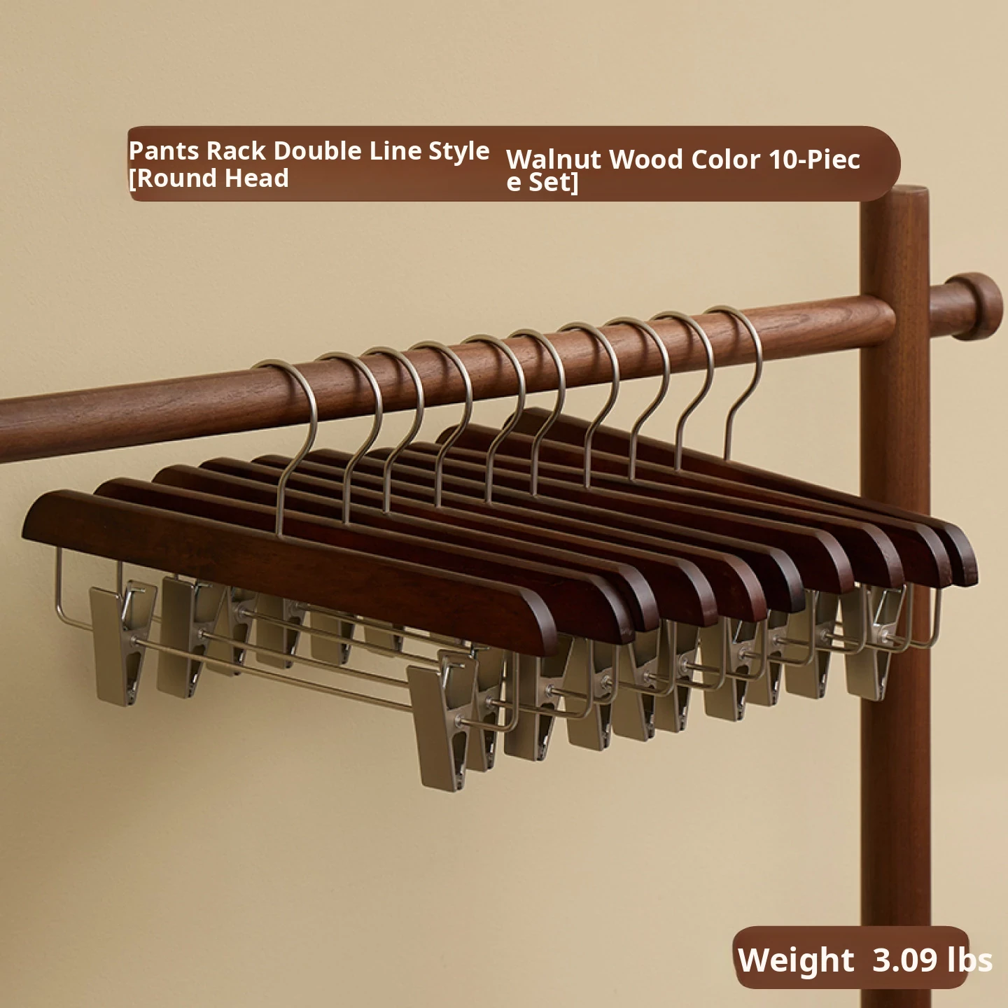 Double-Line Trouser Rack, 10 Pieces [Round Head, Walnut Color]