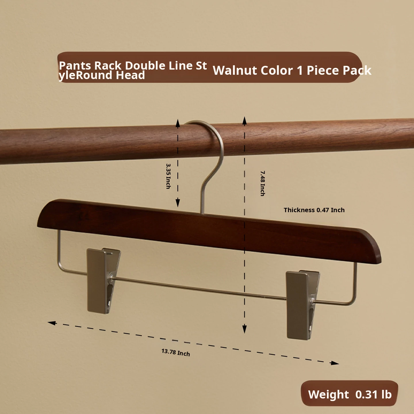 Double-Line Trouser Rack 1 Pack [Round Head, Walnut Color]