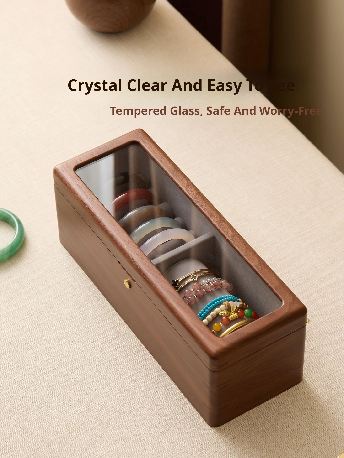 Vanhon Luxury Large Capacity Wooden Jewelry Box for Jade Bracelets and Bangles - Elegant Storage Case for Gold and Gemstone Accessories