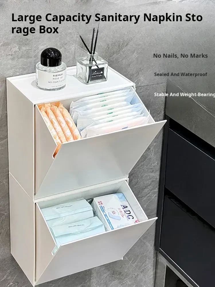Wall-Mounted Waterproof Sanitary Napkin and Toilet Paper Holder – No Drilling Needed, Perfect for Bathroom Organization and Convenience