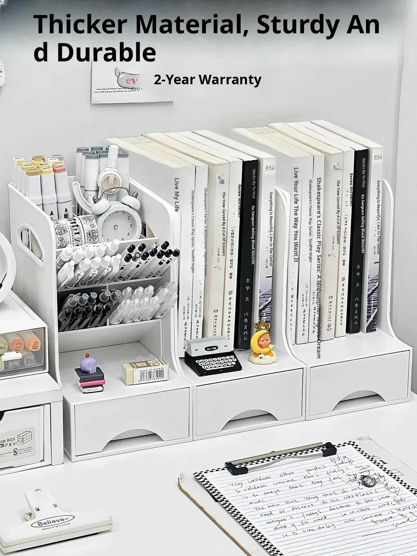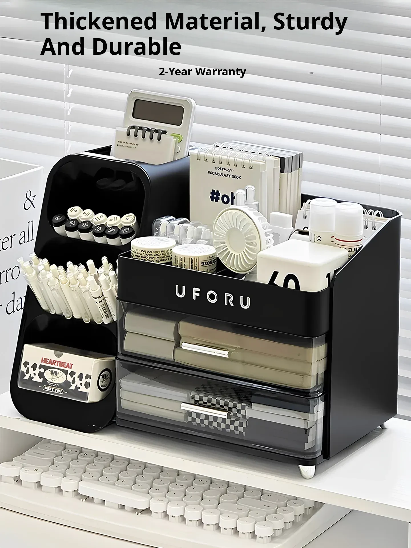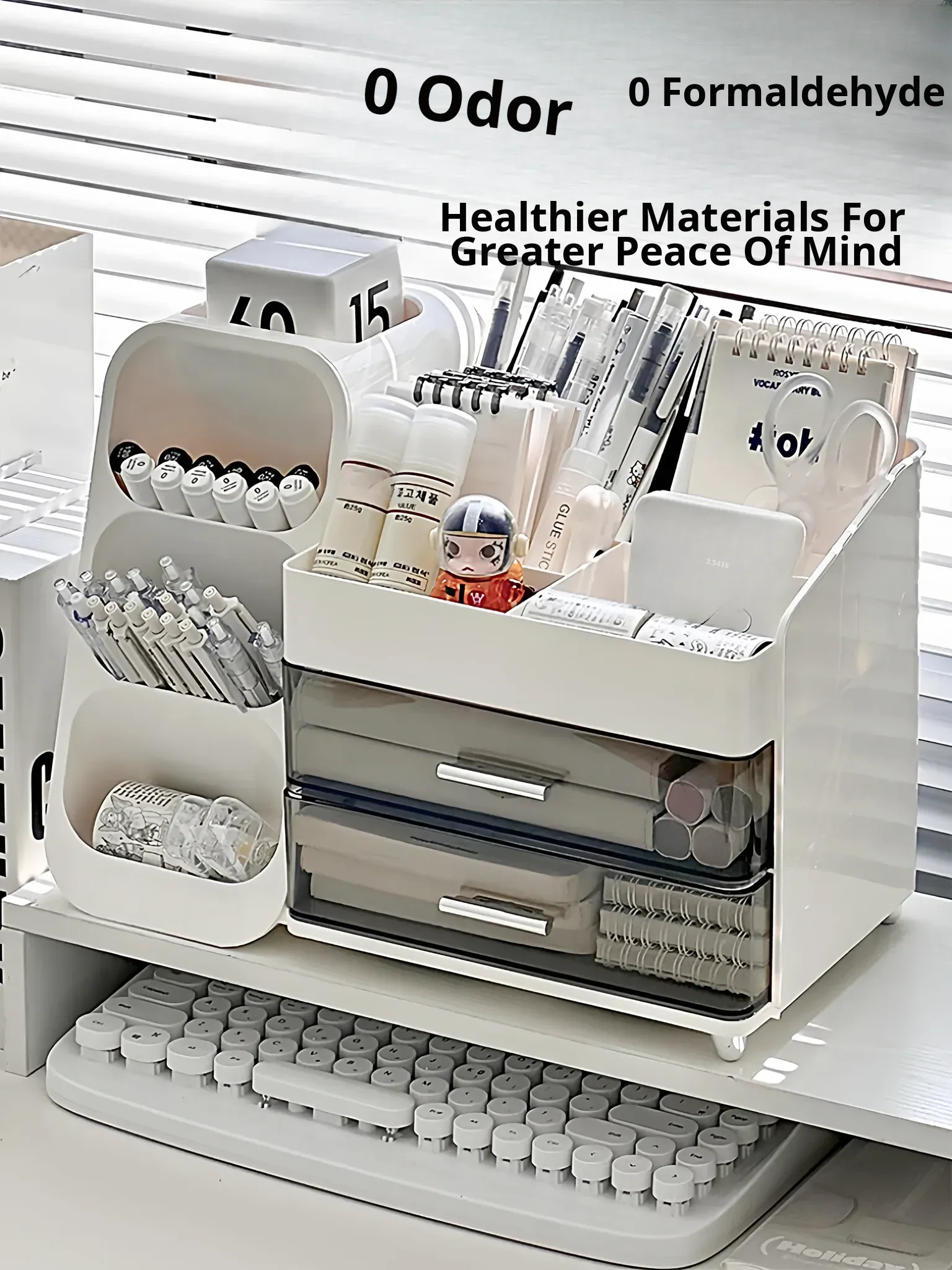 Large Capacity Desktop Organizer with Drawer - Stylish Pen Holder for Students and Office Use, Perfect for Desk Storage and Stationery Organization