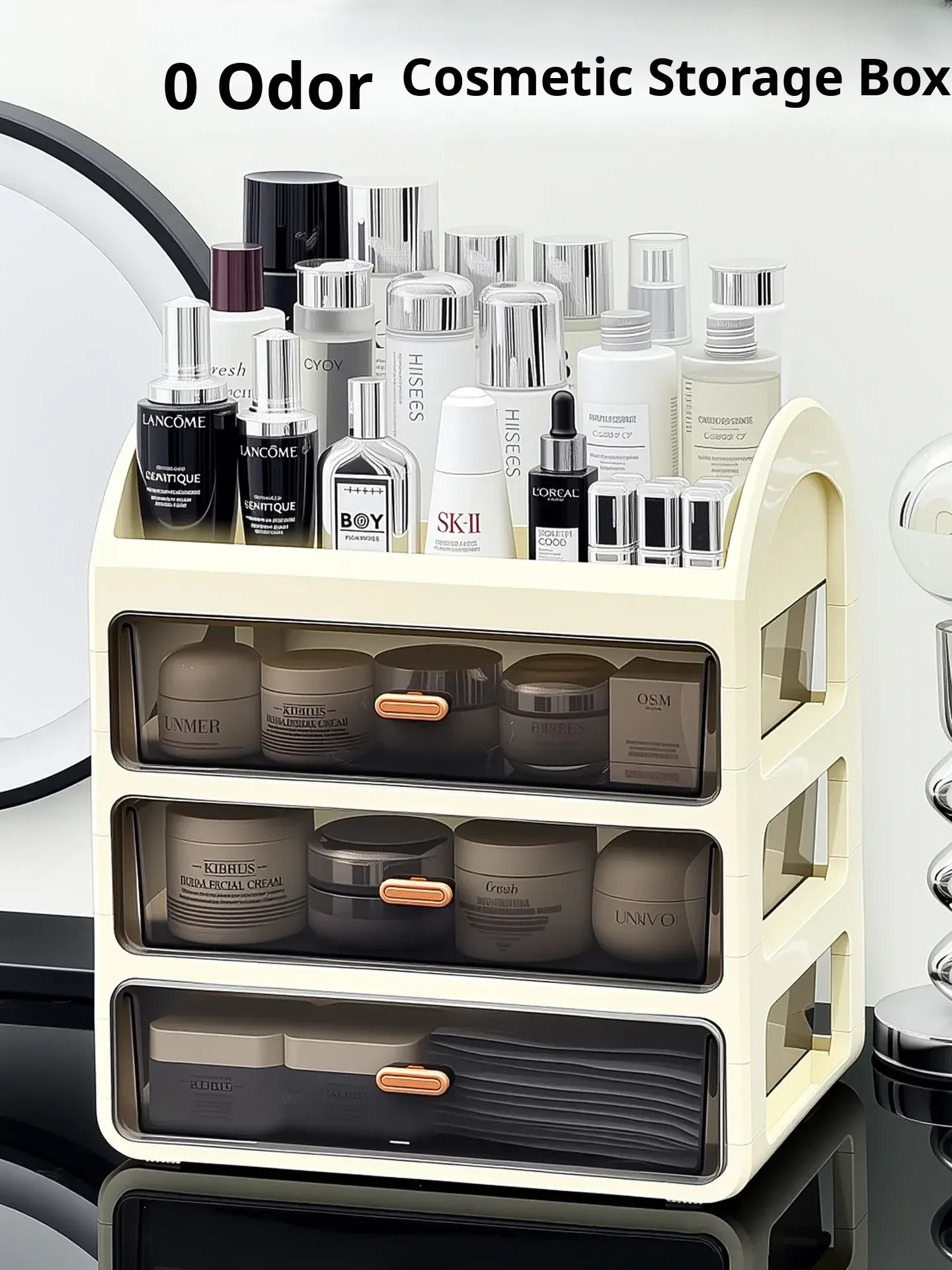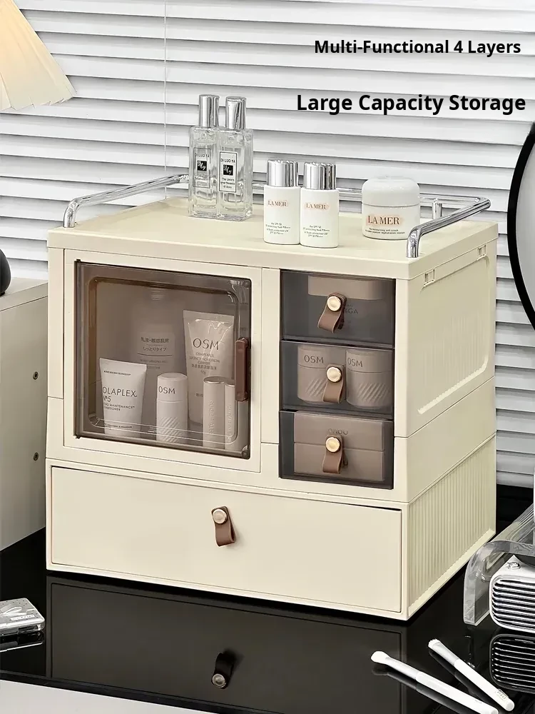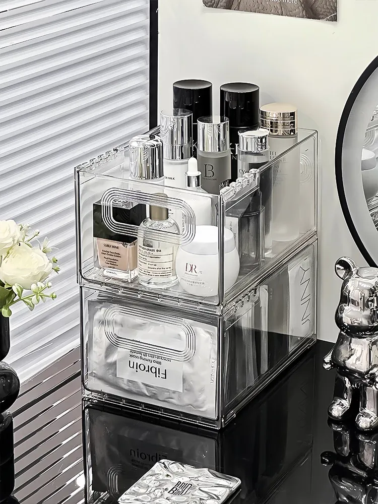 Cosmetic Organizer Storage Box - Large Capacity Drawer Makeup Vanity Shelf, Dustproof Lipstick Holder for Skincare Products and Makeup Essentials