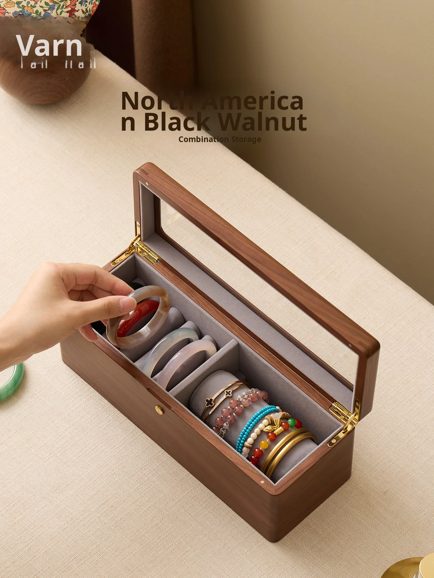 Vanhon Luxury Large Capacity Wooden Jewelry Box for Jade Bracelets and Bangles - Elegant Storage Case for Gold and Gemstone Accessories