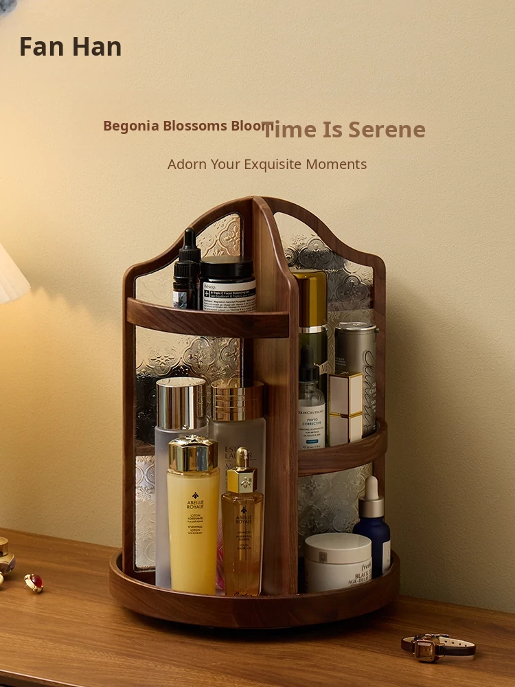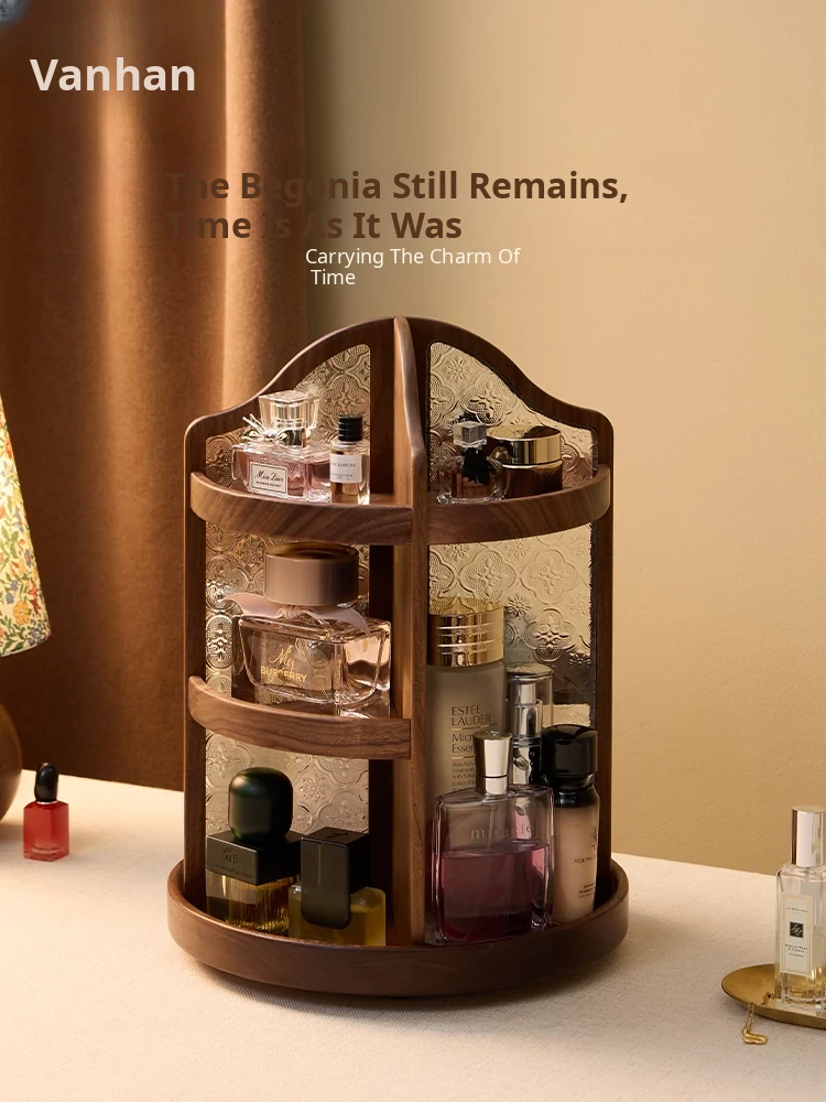 Vanhan Premium Solid Wood Cosmetic Organizer - 2025 New Large Capacity Rotating Perfume Rack for Elegant Desktop Storage