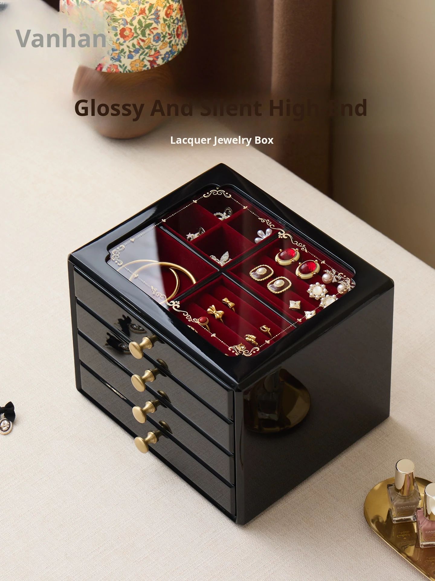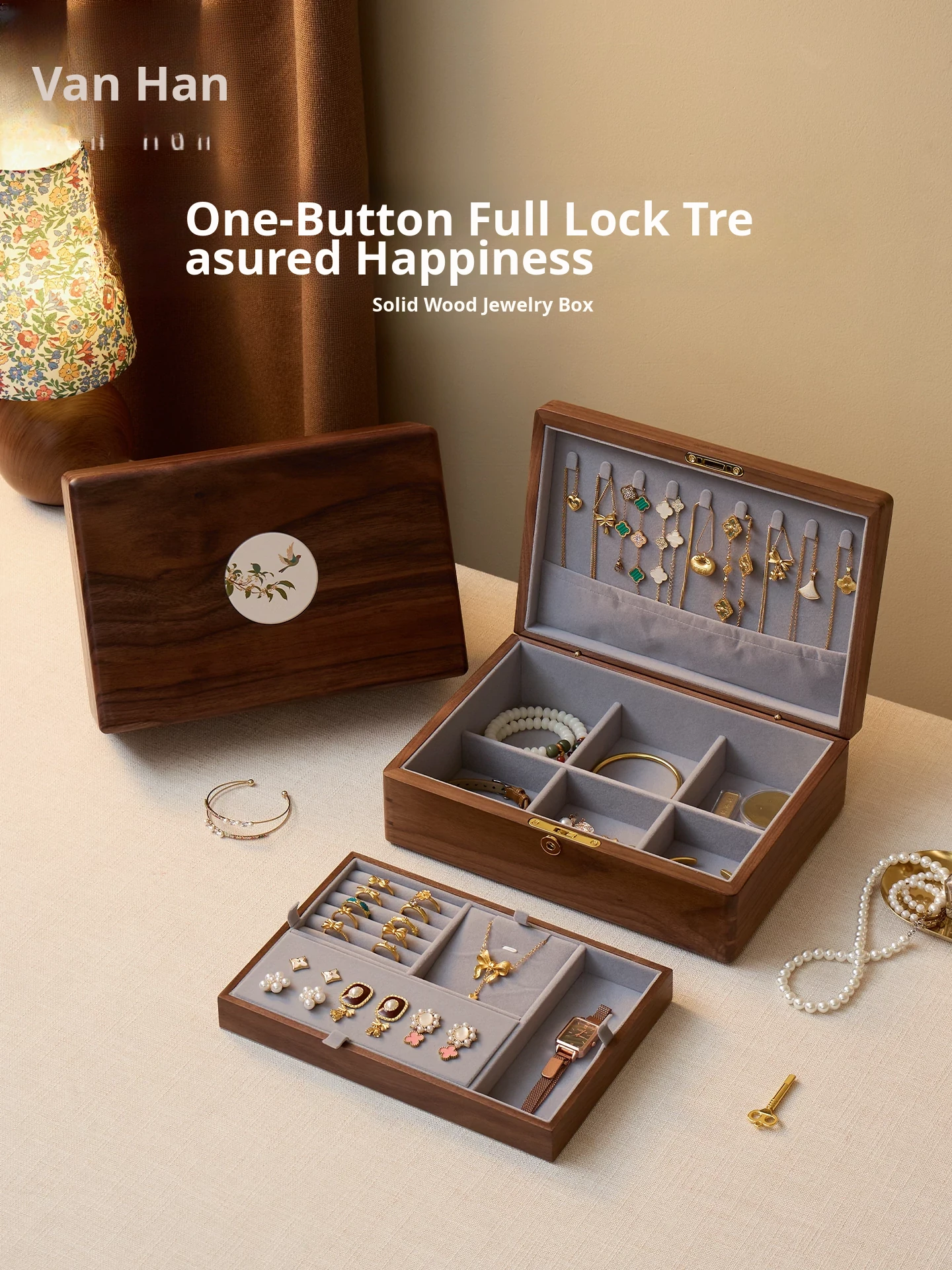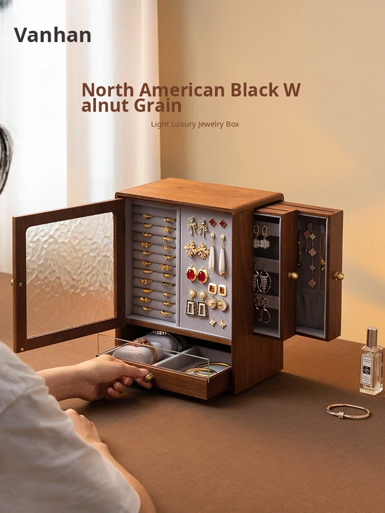 VANHAN Premium Solid Wood Jewelry Box - Elegant Storage for Gold and Gemstone Accessories, Perfect Gift for New Year and Valentine's Day