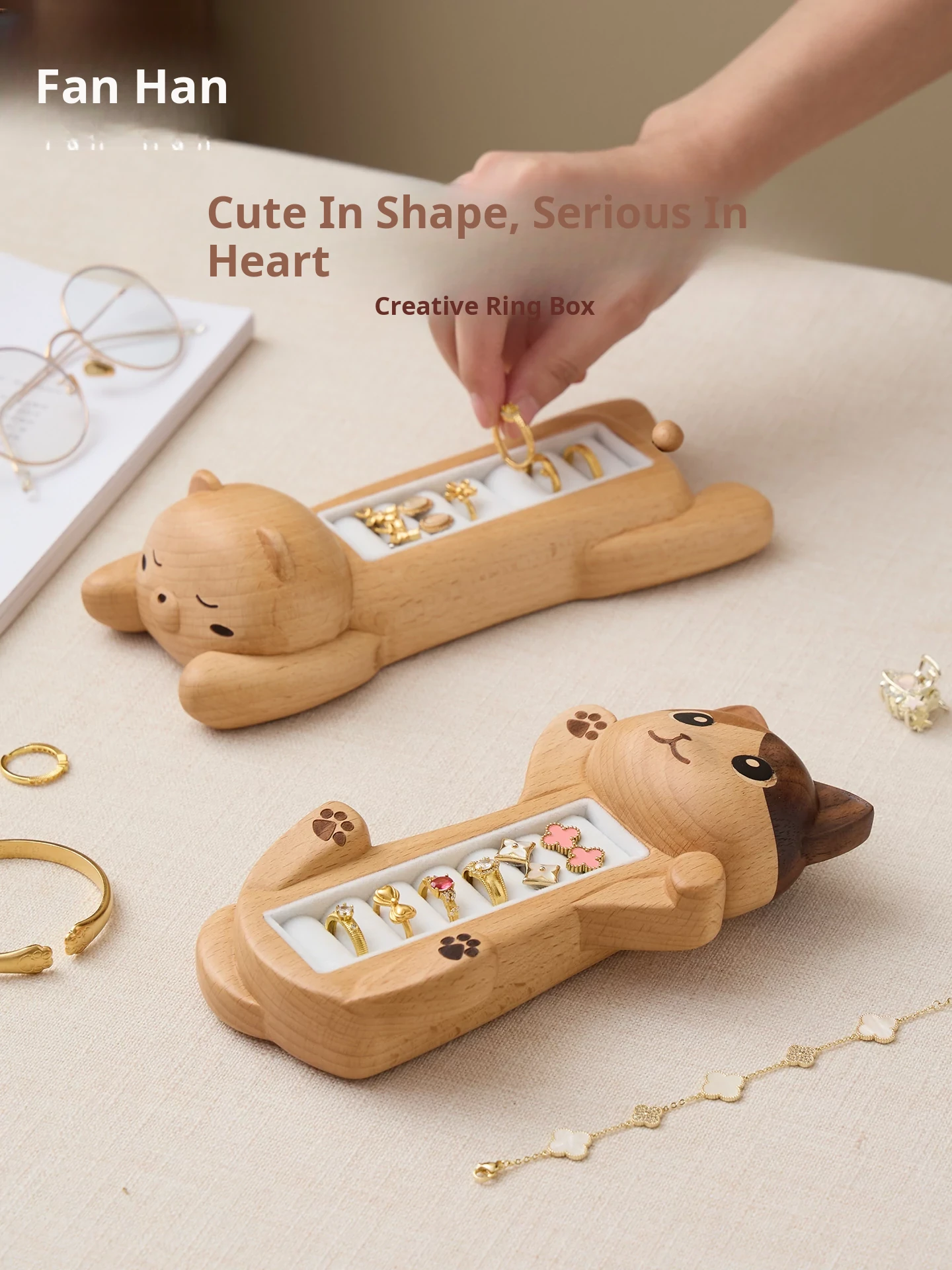 Vanhan Wooden Earring and Ring Storage Box - Creative and Cute Gift for Best Friends, Birthdays, and Weddings - Elegant Jewelry Organizer in Natural Wood