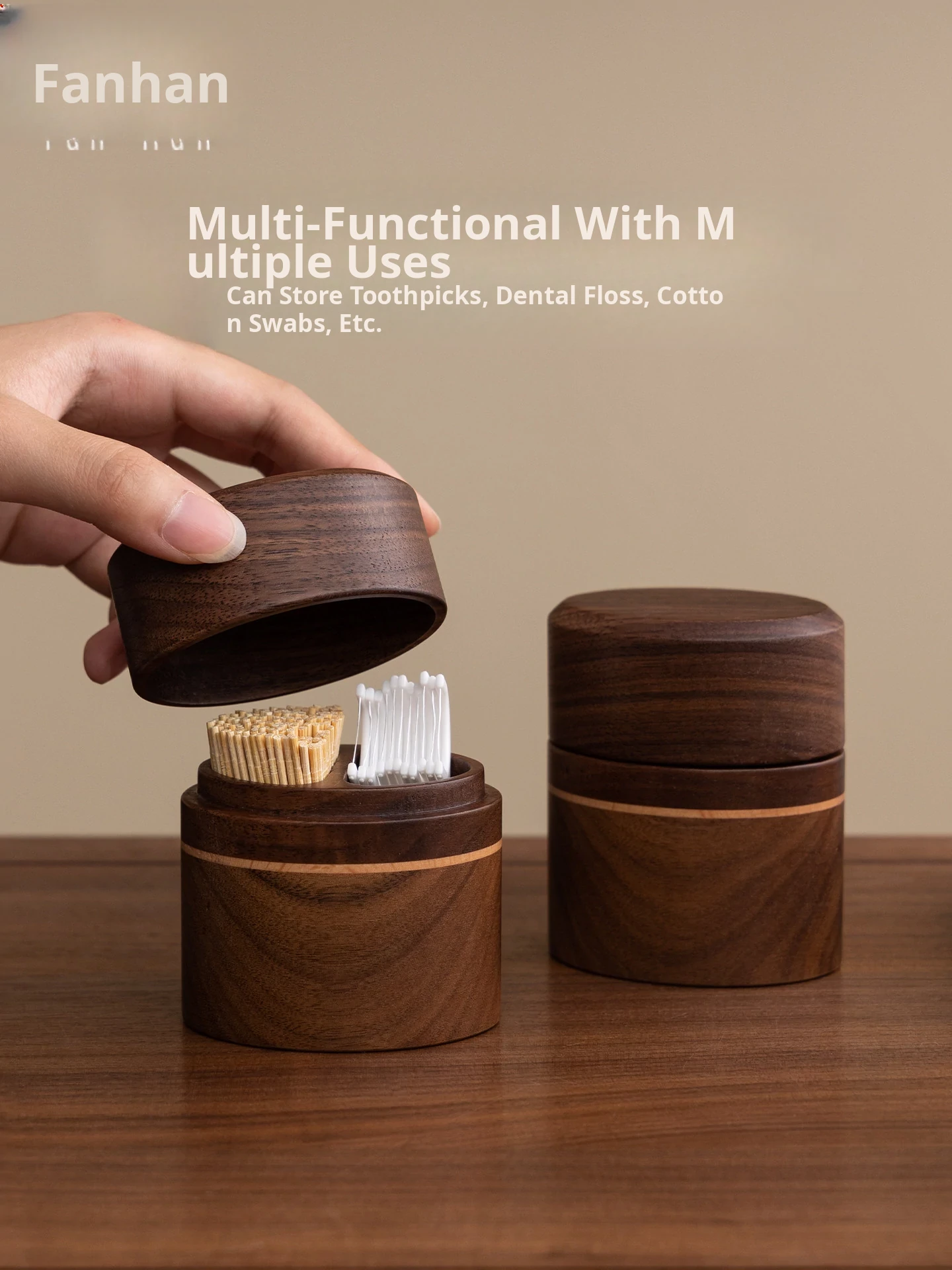 Vanhan Solid Wood Toothpick Holder 2025 New Design - Stylish Toothpick Container for Home Use, Elegant Luxury Toothpick Box with Cotton Swab Storage.