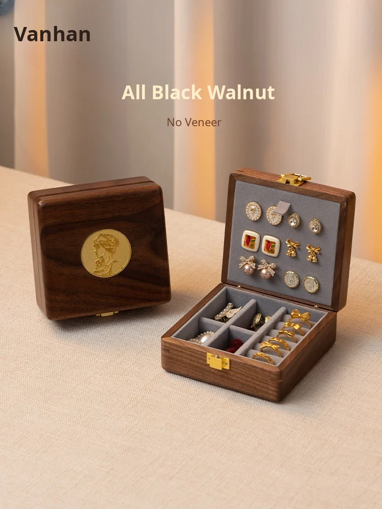 Vanhan Portable Solid Wood Jewelry Box - Exquisite Mini Travel Accessory Organizer for Elegant Storage of Your Precious Gems and Accessories