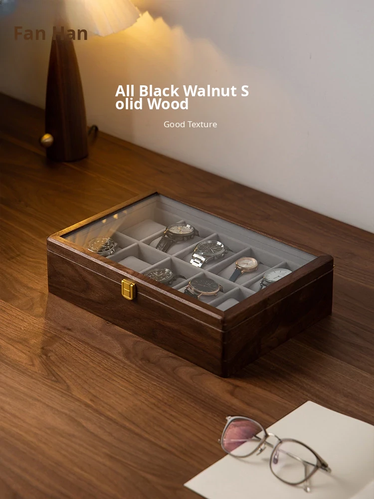 Vanhang Premium Solid Wood Watch Storage Box - Elegant Black Walnut Watch Collector's Case for Men and Women - Perfect New Year Gift