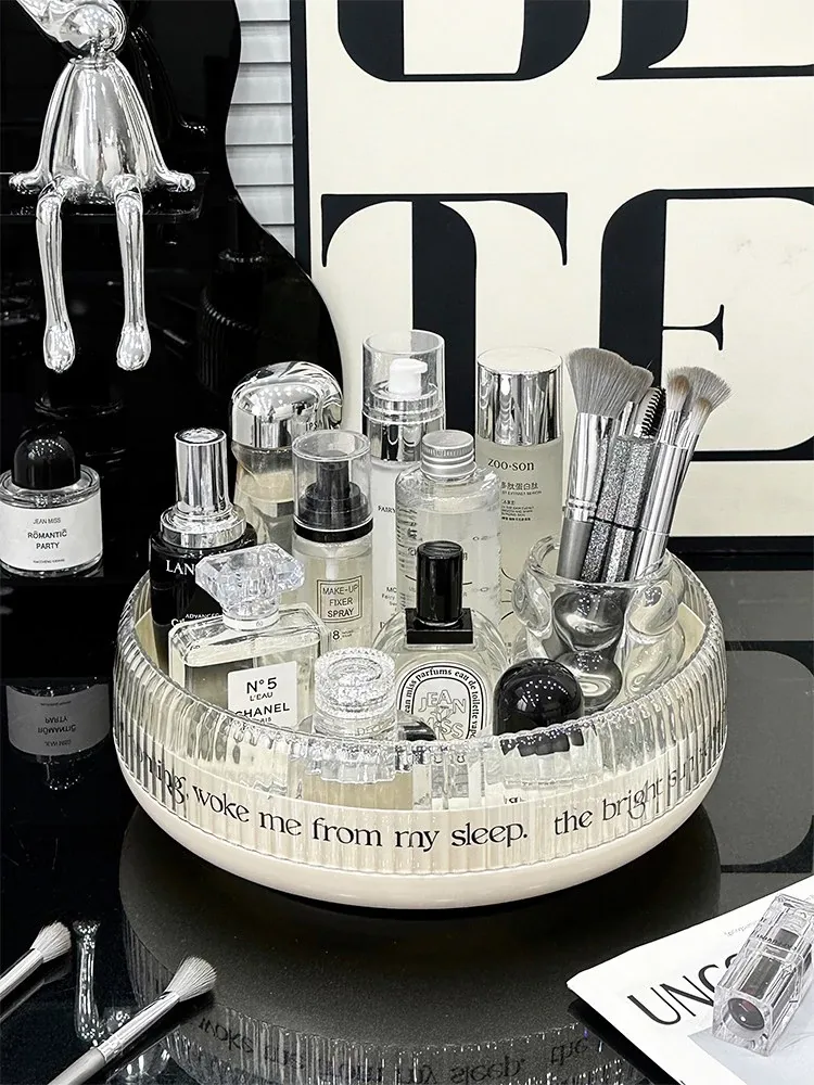 Rotating Makeup Brush Organizer - Stylish Desktop Storage for Skincare and Cosmetics, Perfect for Dressing Tables - Versatile Makeup and Tissue Holder