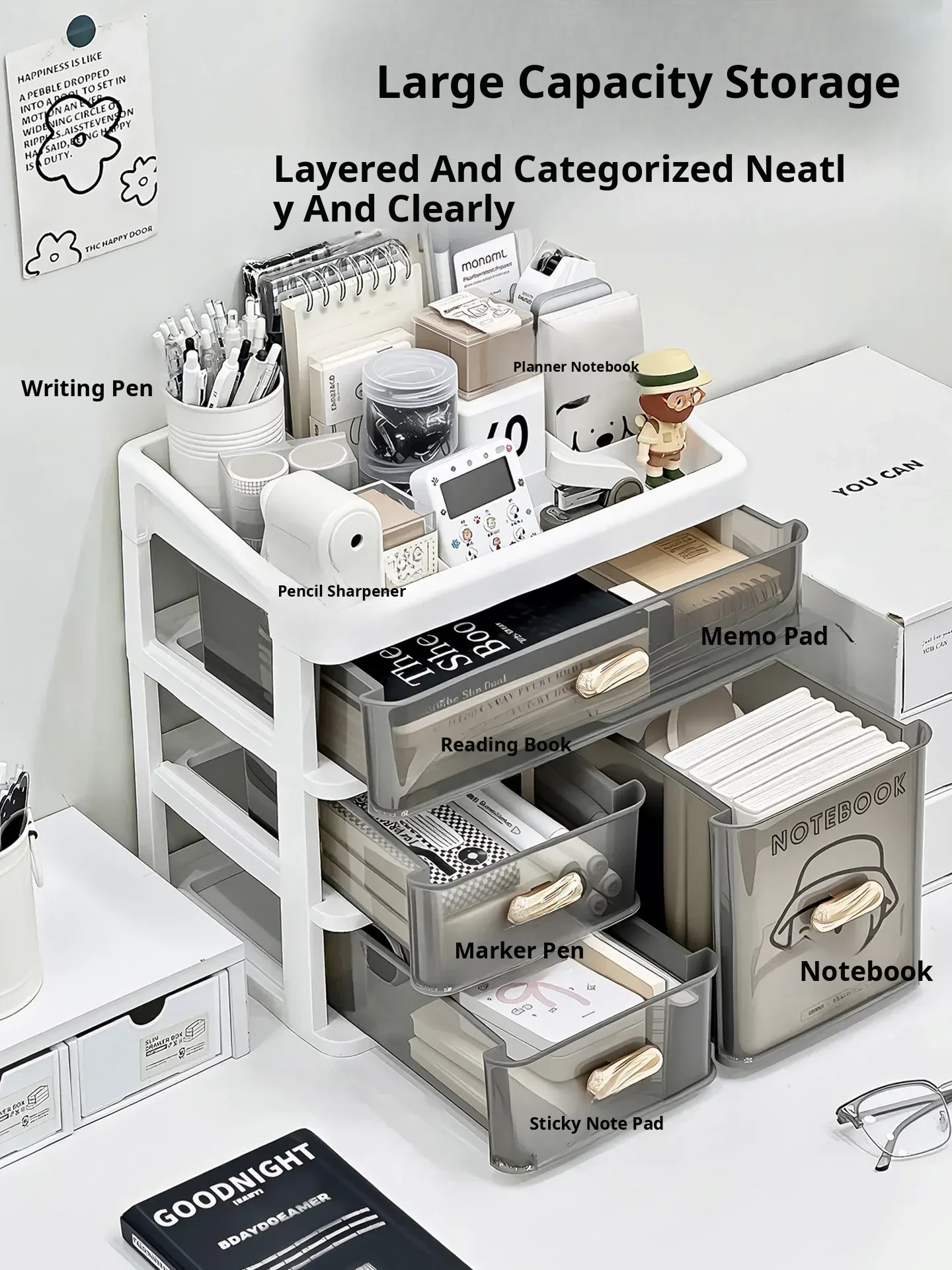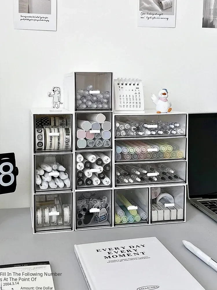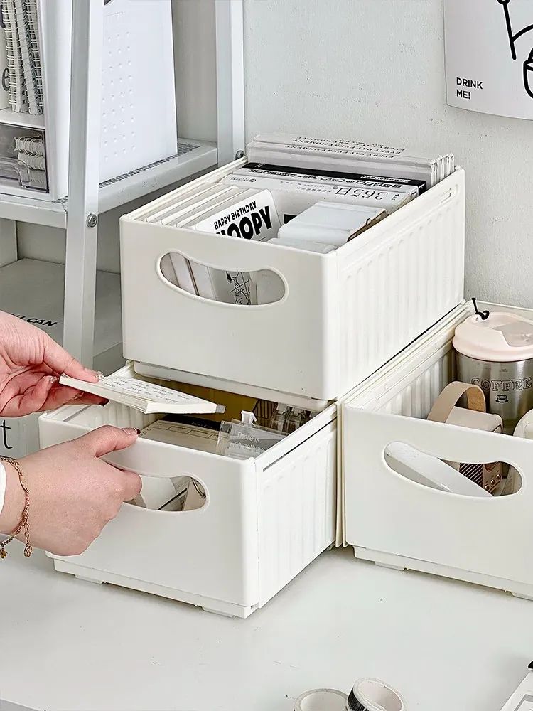 Transparent Desktop Organizer Box - Stylish Storage Solution for Office Supplies, Books, and Miscellaneous Items - Drawer Style Design for Efficient Workspace Organization