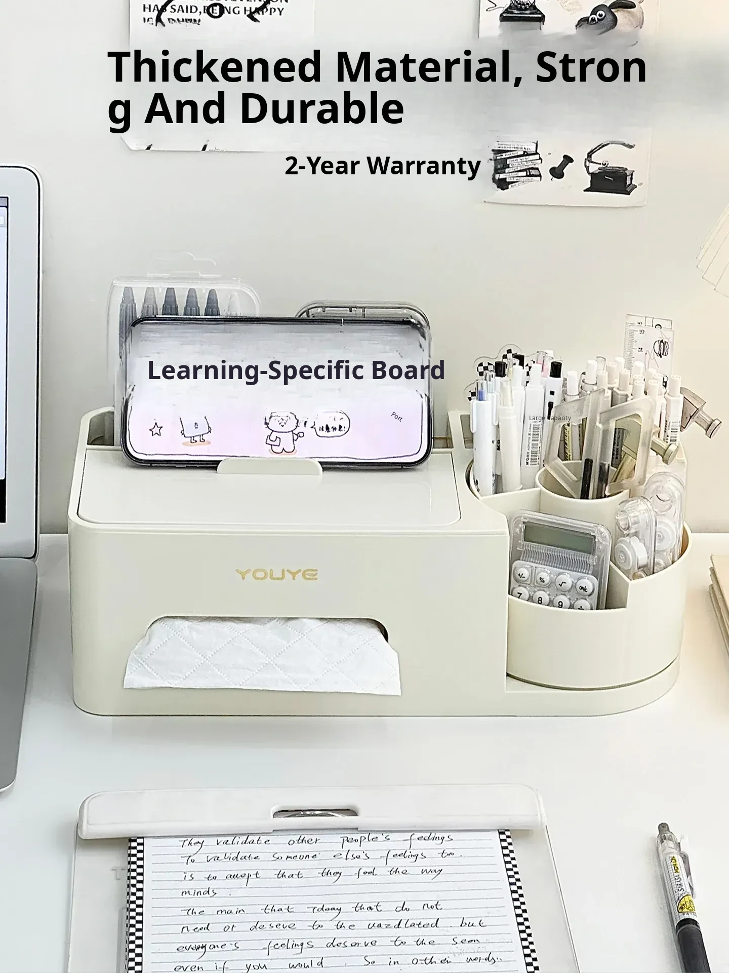 Multi-Functional Desktop Organizer - Versatile Pencil Holder and Storage Box for Office, Living Room, and Desk - Perfect for Stationery and Miscellaneous Items, Includes Tissue Holder