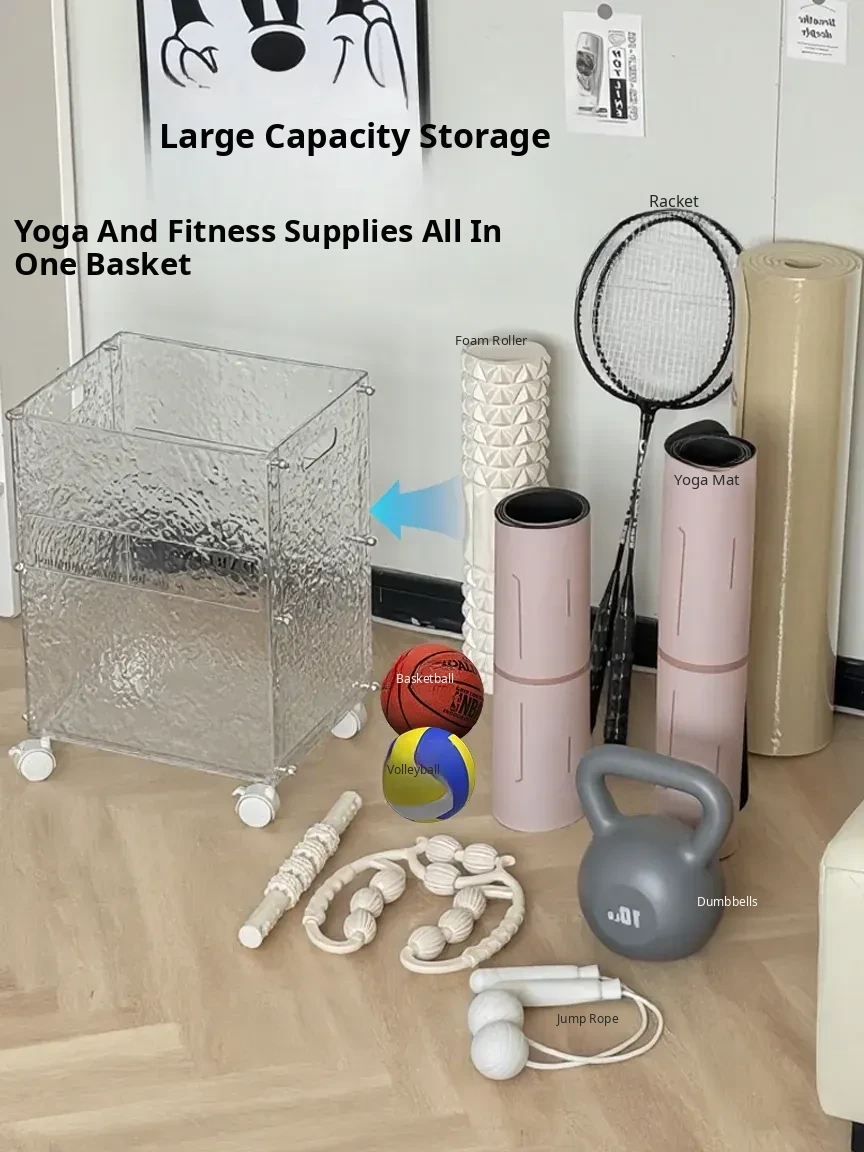 Yoga Mat Storage Basket - Portable Fitness Equipment Organizer with Universal Wheels, Perfect for Home Gym and Sports Gear!