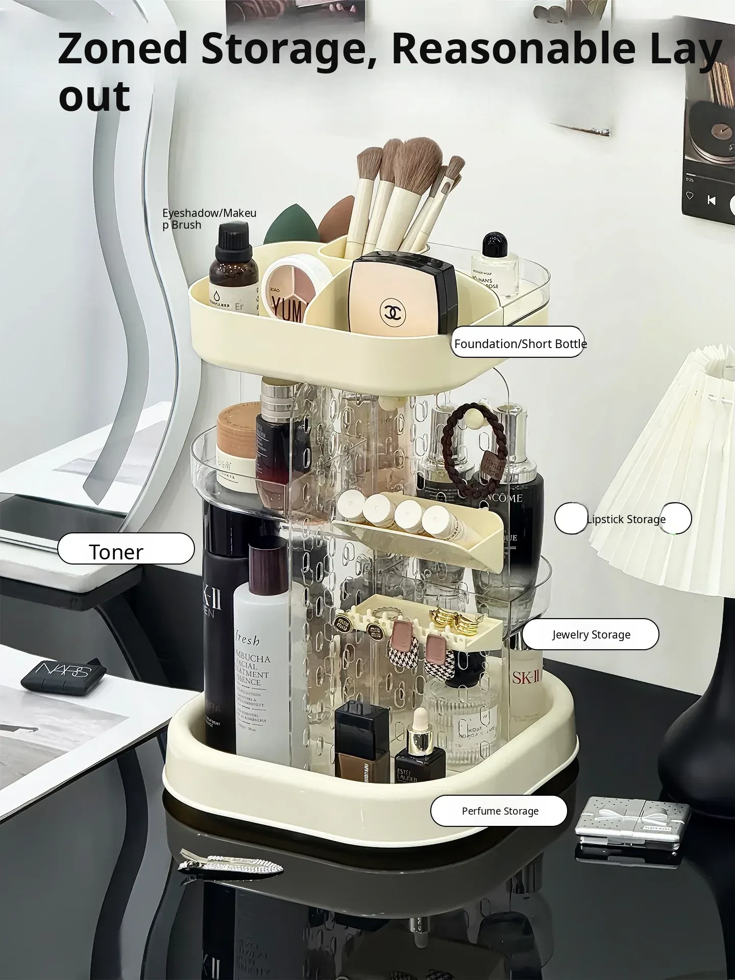 Rotating Makeup Organizer - Acrylic Transparent Storage Rack for Desktop Vanity, Perfumes, Lipsticks & Skincare Products - Stylish and Functional Beauty Station