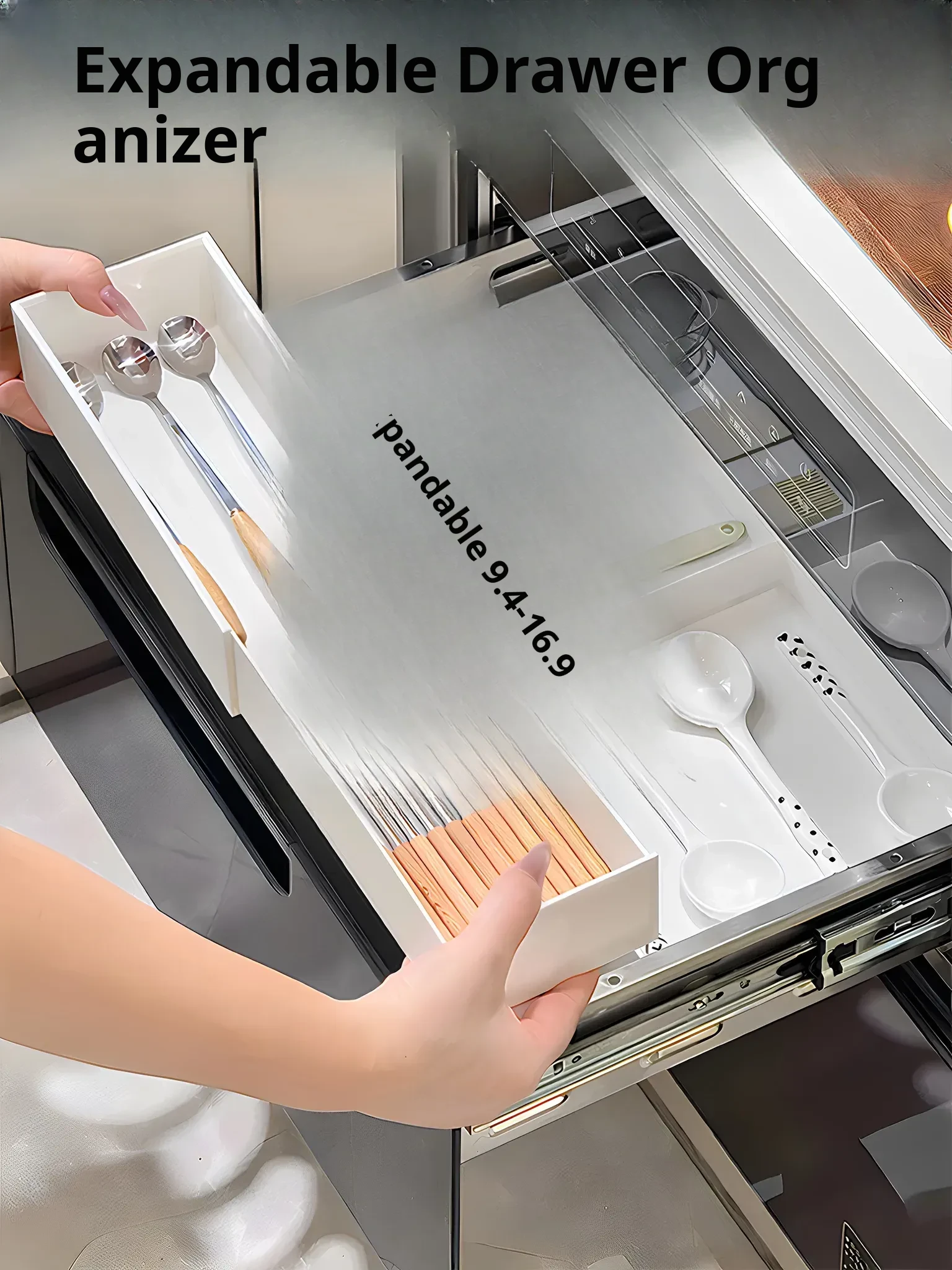 Expandable Drawer Organizer with Dividers - Versatile Storage Box for Cutlery, Bowls, and Kitchen Utensils - Perfect for Deep Cabinets and Efficient Space Management