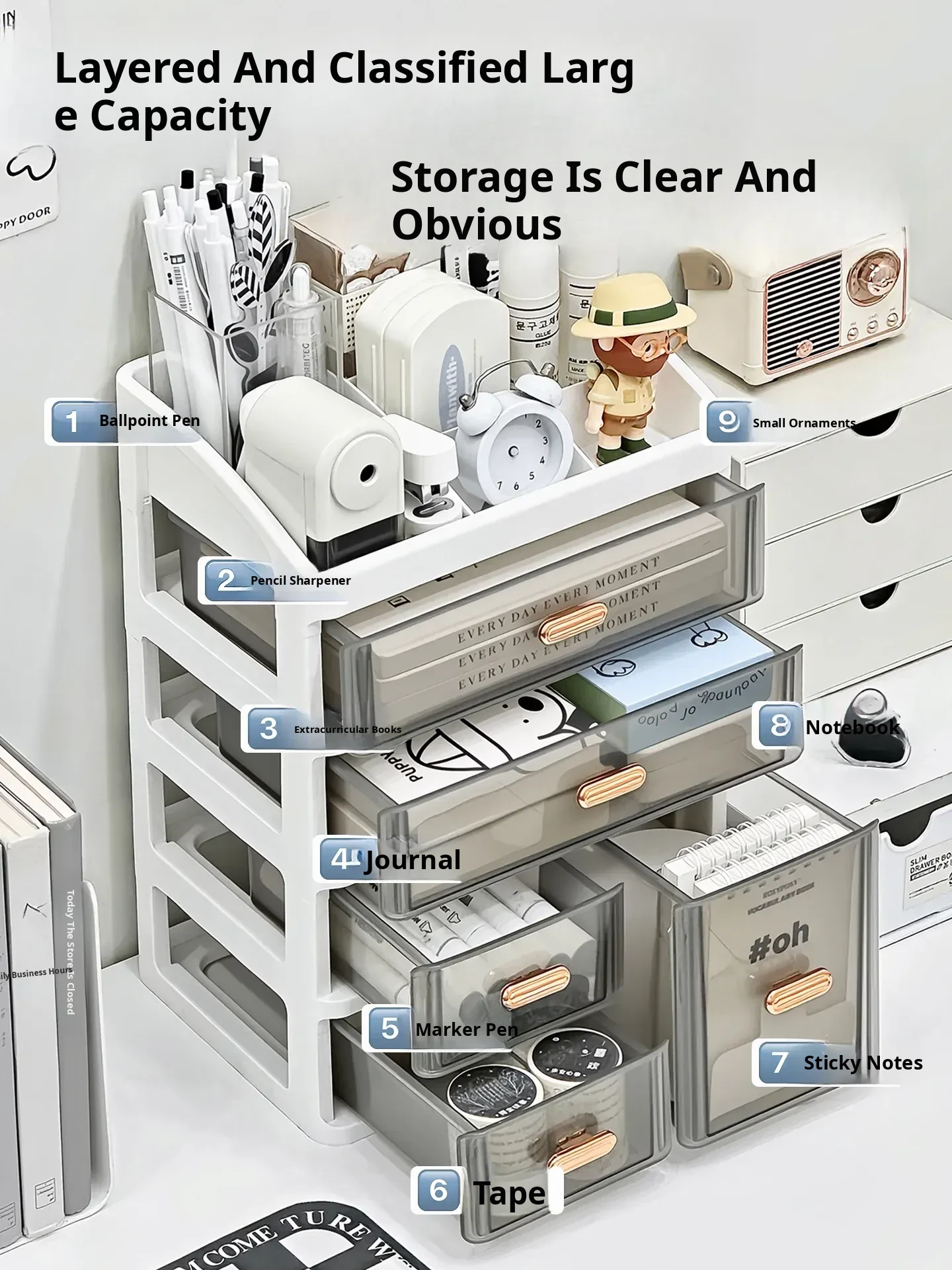 Student Desk Organizer with Drawer - Multi-Layer Stationery and Miscellaneous Storage Box for Office Desk - Perfect for Keeping Your Workspace Tidy and Efficient!