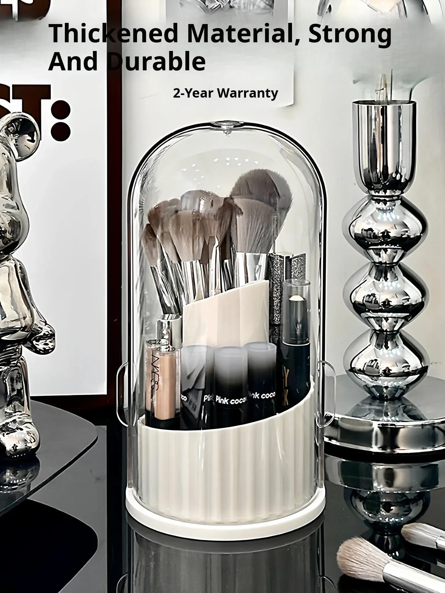 Luxury Dustproof Makeup Brush Organizer with Lid - Large Capacity Rotating Holder for Brushes, Lipsticks, and Foundations - Perfect for Beauty Enthusiasts