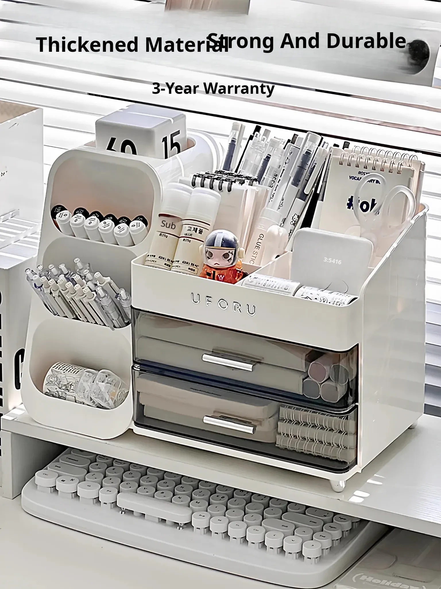 Multi-Functional Desktop Organizer Box with Drawer - Stylish Stationery Holder and Storage Solution for Office Supplies and Miscellaneous Items