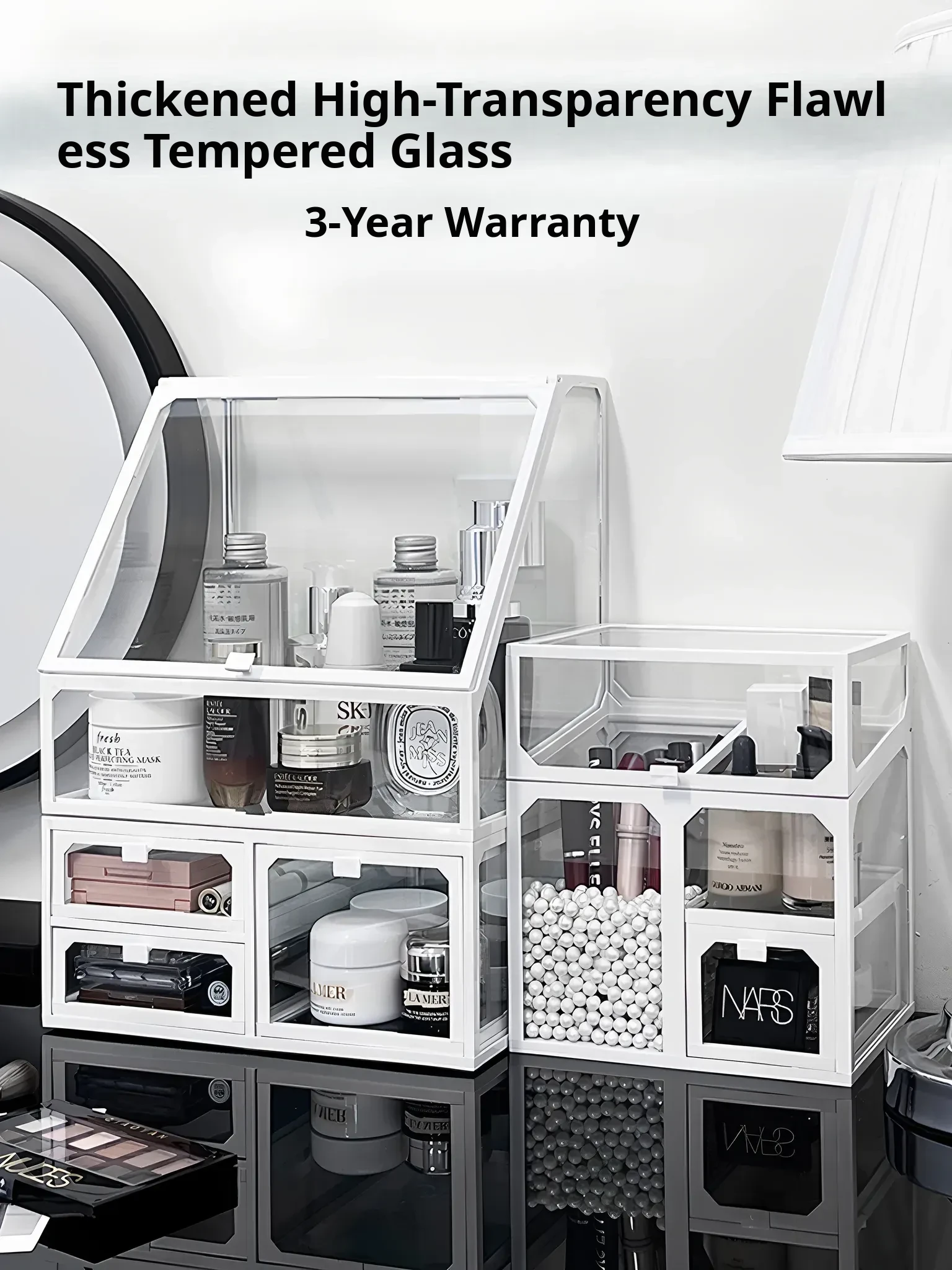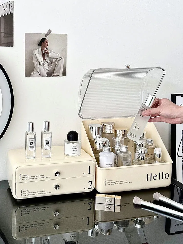 Large Capacity Dustproof Makeup Organizer with Drawer - Elegant Desktop Storage for Cosmetics, Skincare Products, and Lipsticks - Keep Your Vanity Neat and Stylish!