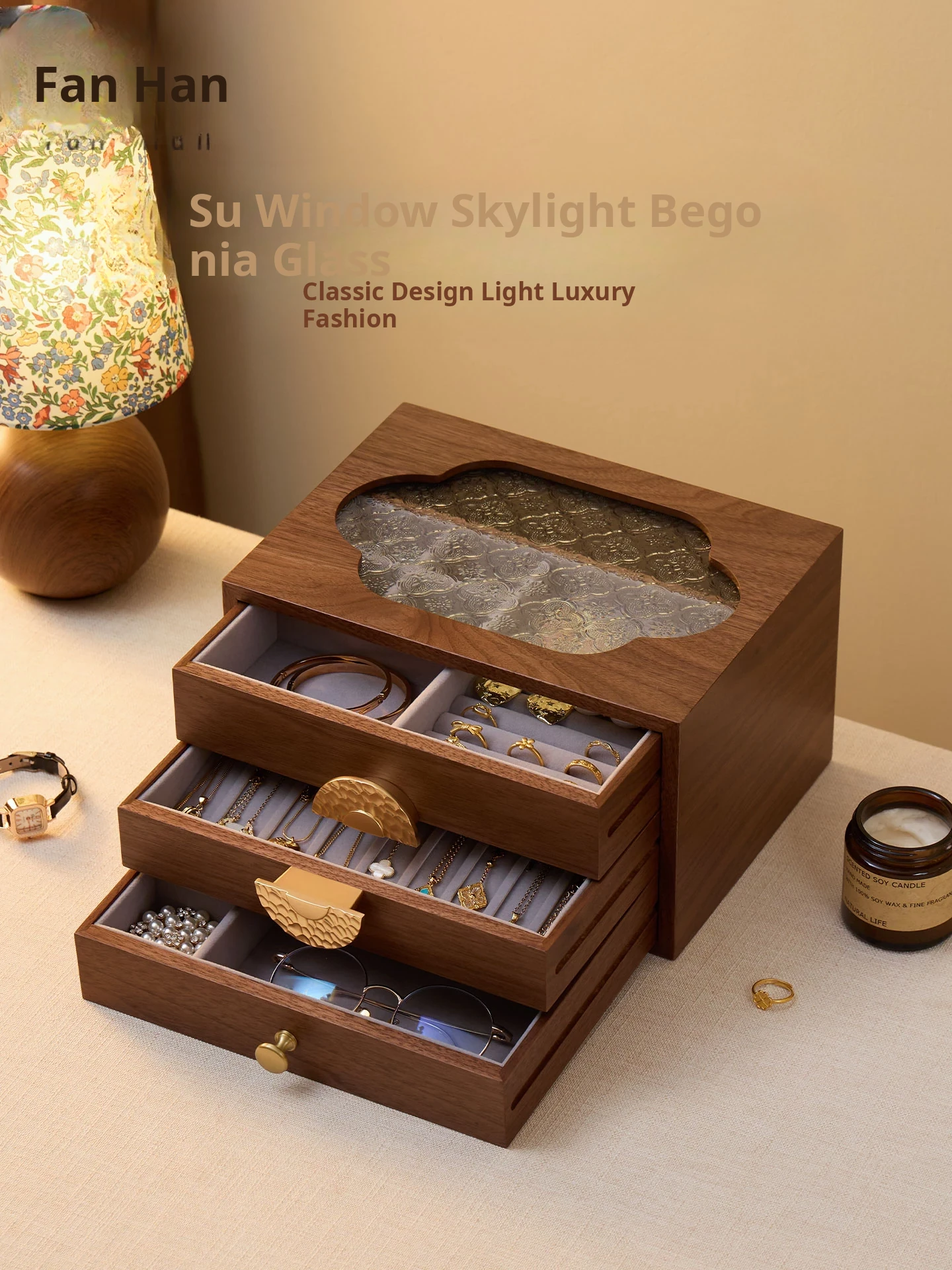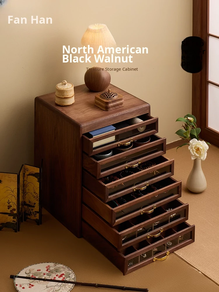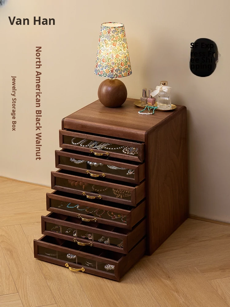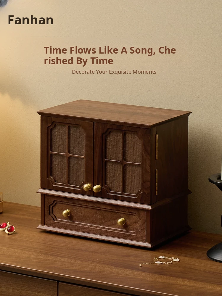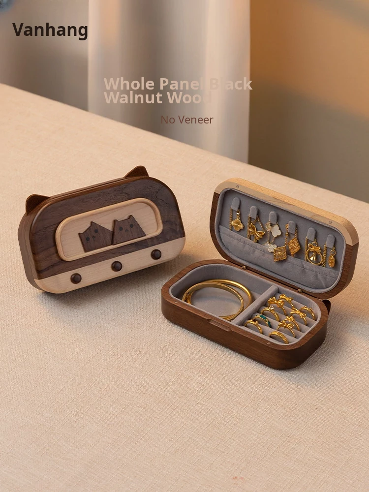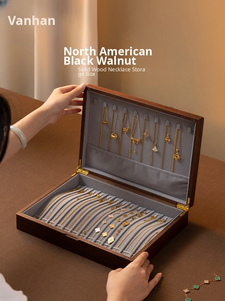 Vanhang Black Walnut Jewelry Storage Box - Vintage Luxury New Year Gift for Gold Jewelry - Solid Wood Accessory Organizer