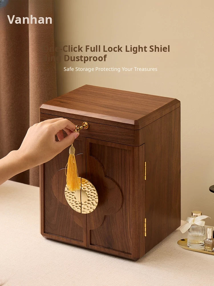 Vanhan Solid Wood Jewelry Box with Lock - Elegant New Chinese Style Antique Design, Perfect for Weddings and New Year Gifts, Ideal for Storing Gold Accessories and Treasures