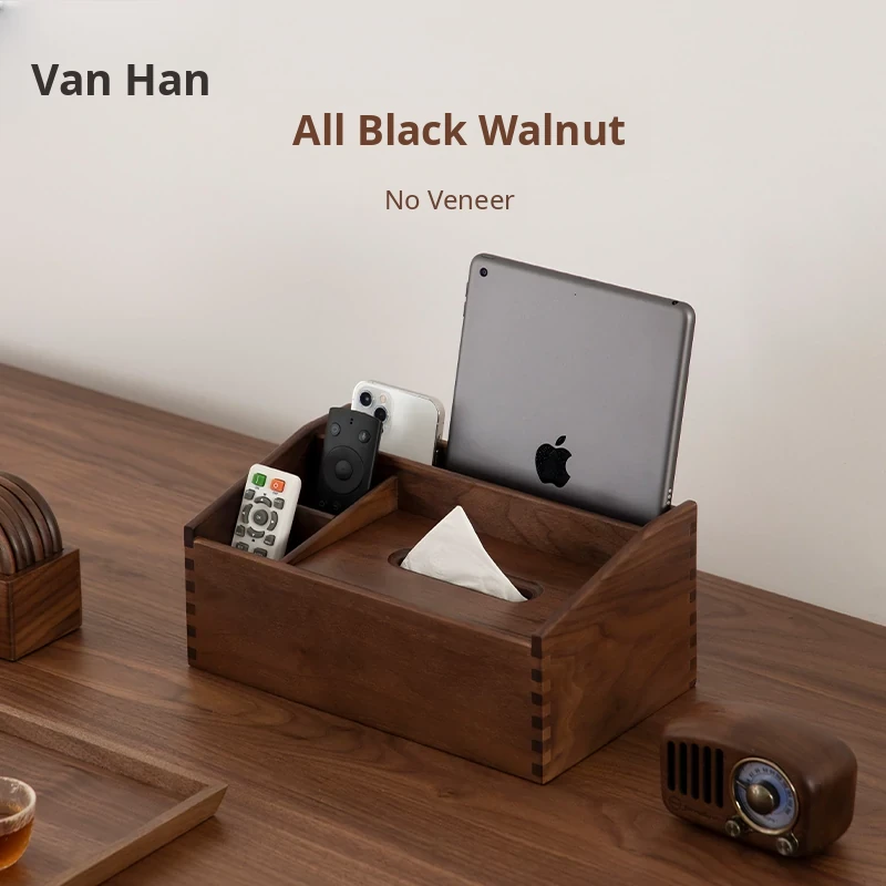 VANHAN Solid Wood Multifunctional Tissue Box - Elegant High-End Remote Control Organizer for Living Room, Stylish Coffee Table Tissue Holder